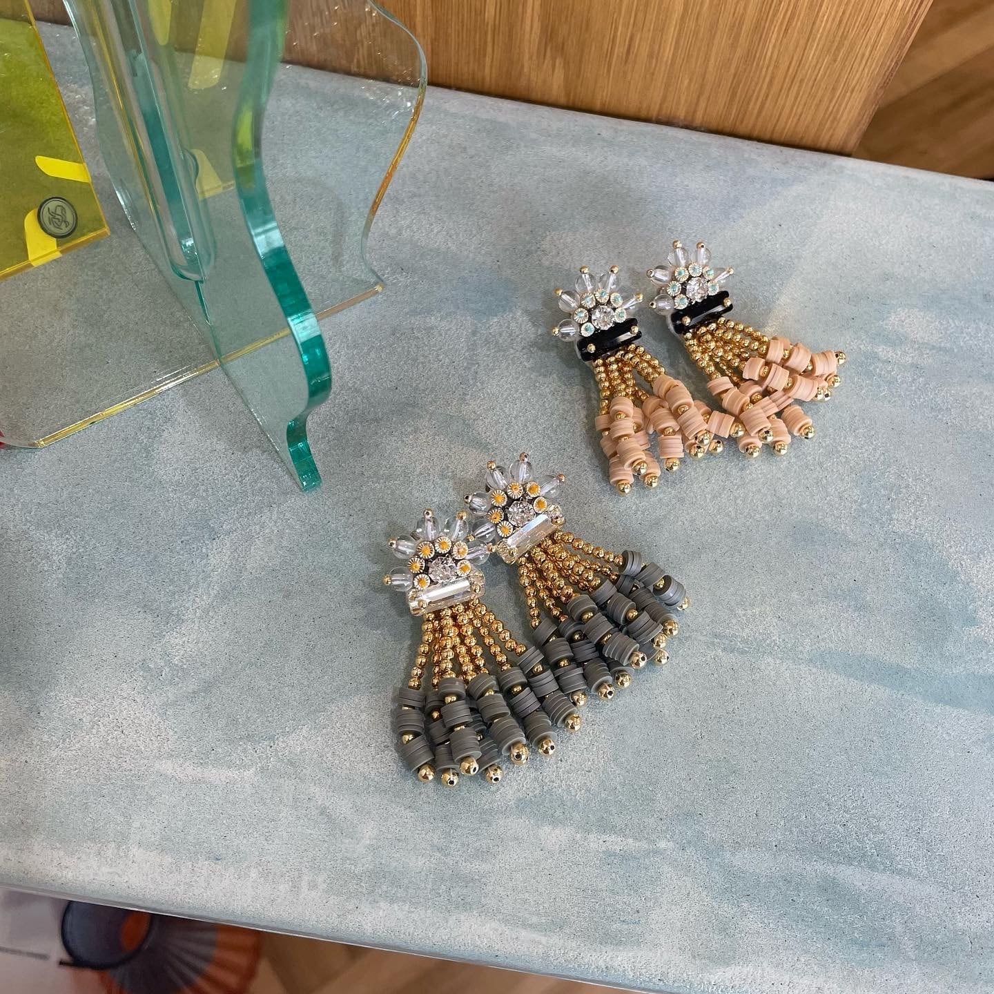 透明の竹ビーズに不揃いの7種類の天然石を使ったネックレスからブラウンが仲間入りです。 天然石は ▫︎ピンクコーラル ▫︎ハウライト ▫︎グレー アゲート ▫︎グリーンジェイド ▫︎マザーオブパール ▫︎レモンジャスパー ▫︎ピーチアべンチュリン 色違いバージョンとの重ねづけもオススメです。 ¥3,200/¥3,520(tax in) サイズ⇢全長約35㎝+サイズ調節約5㎝ アジャスター、フック部分⇢サージカルステンレス