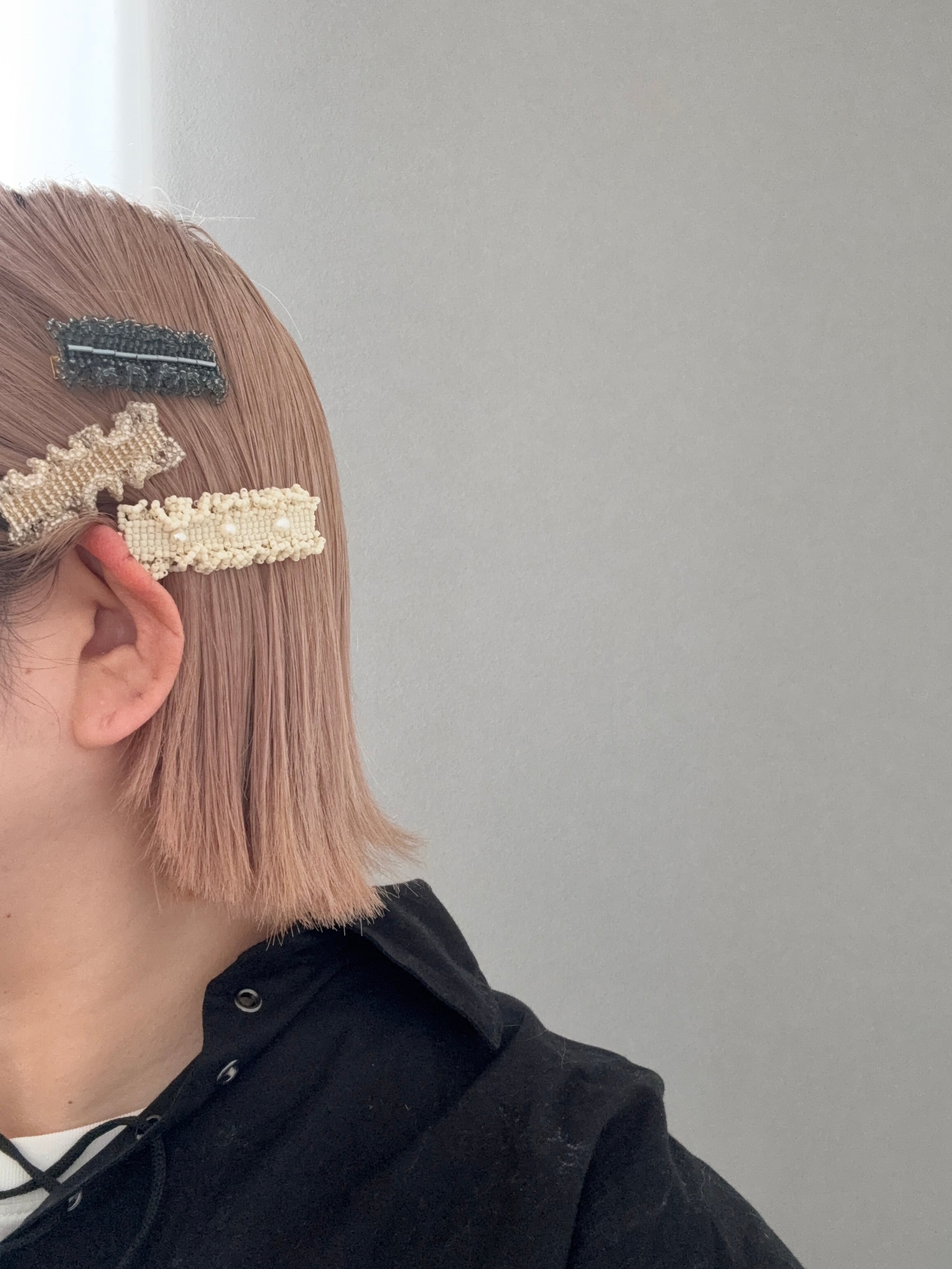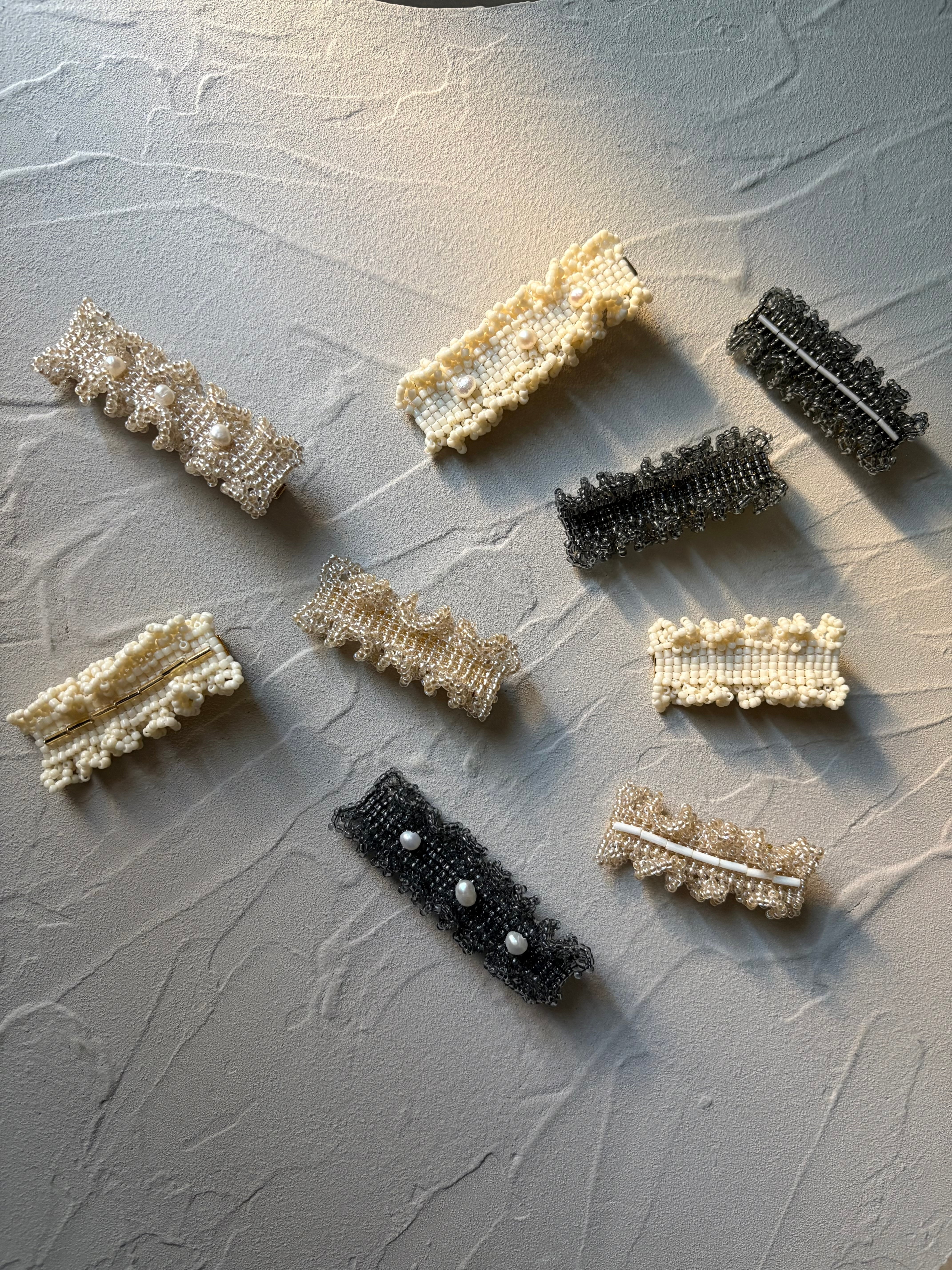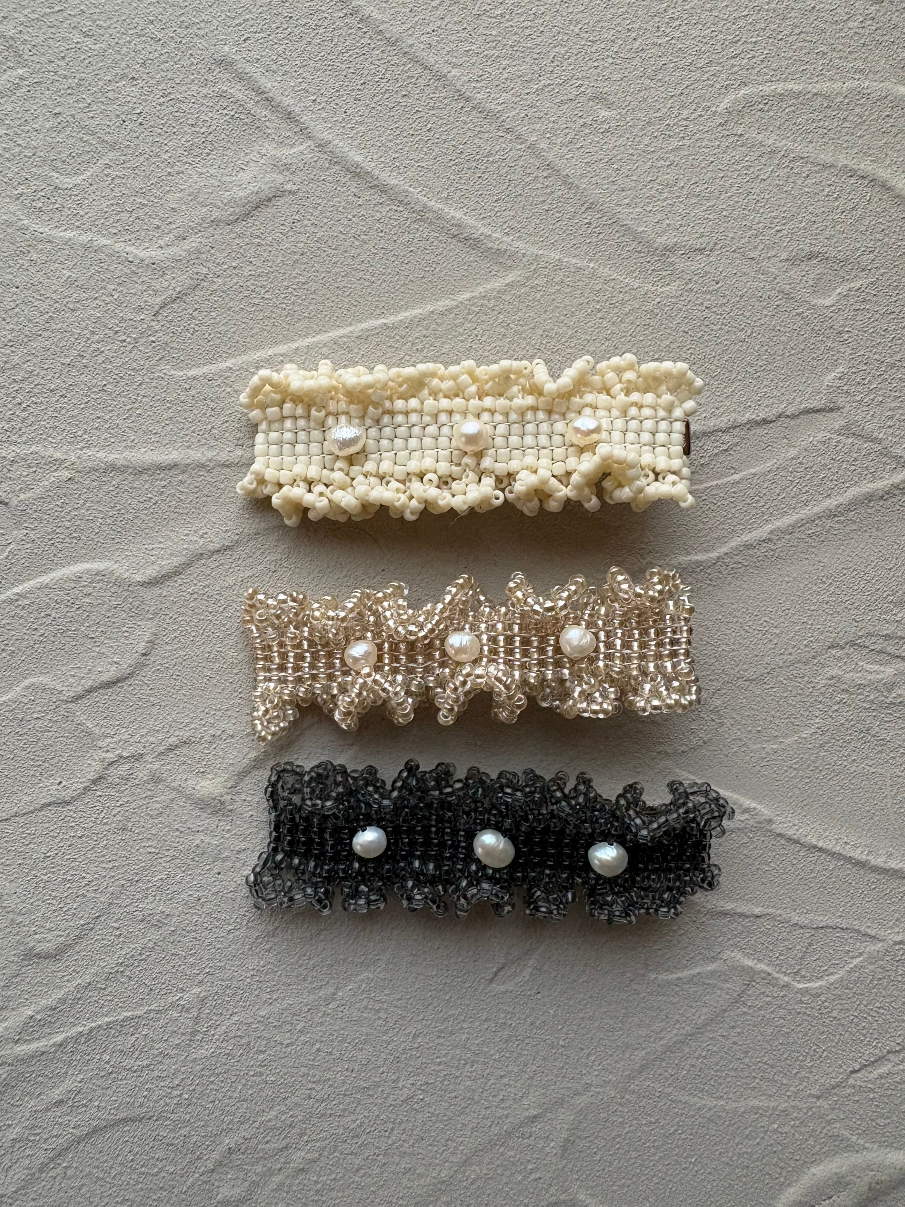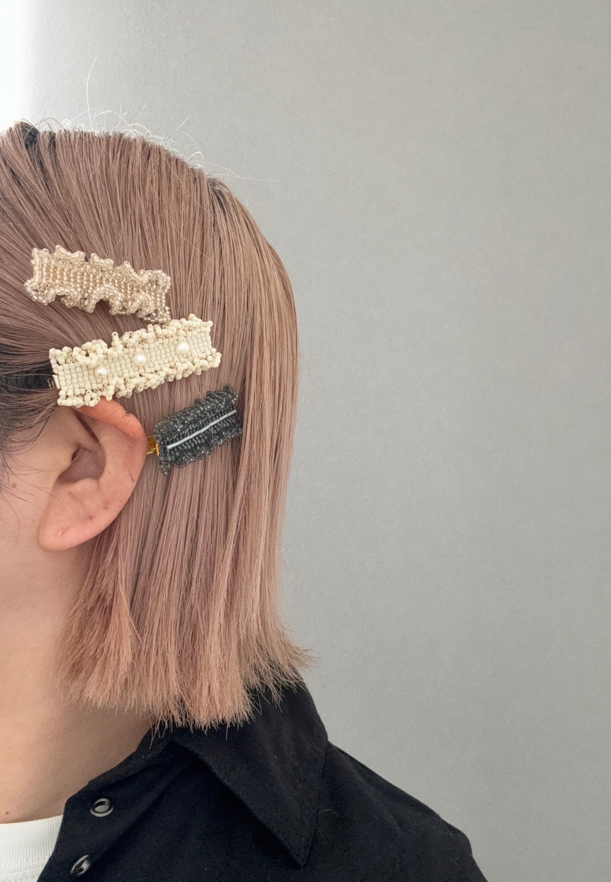 一粒ずつ時間をかけて編み上げたビーズのヘアクリップです。