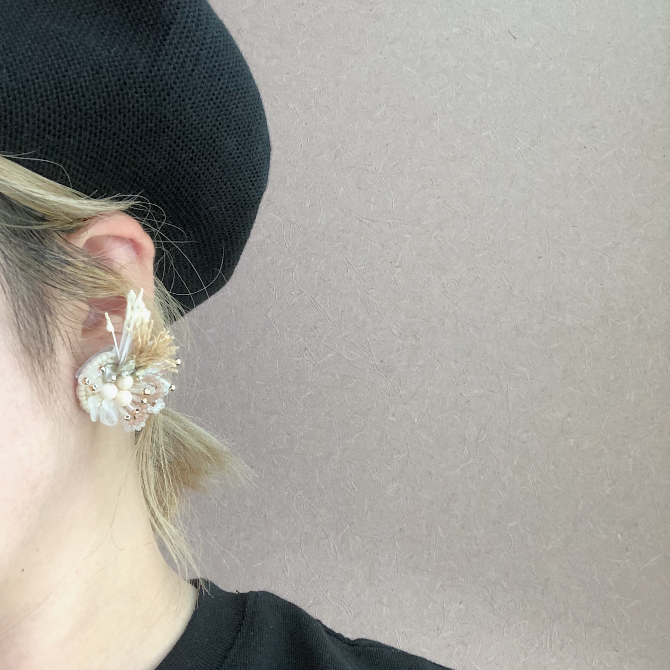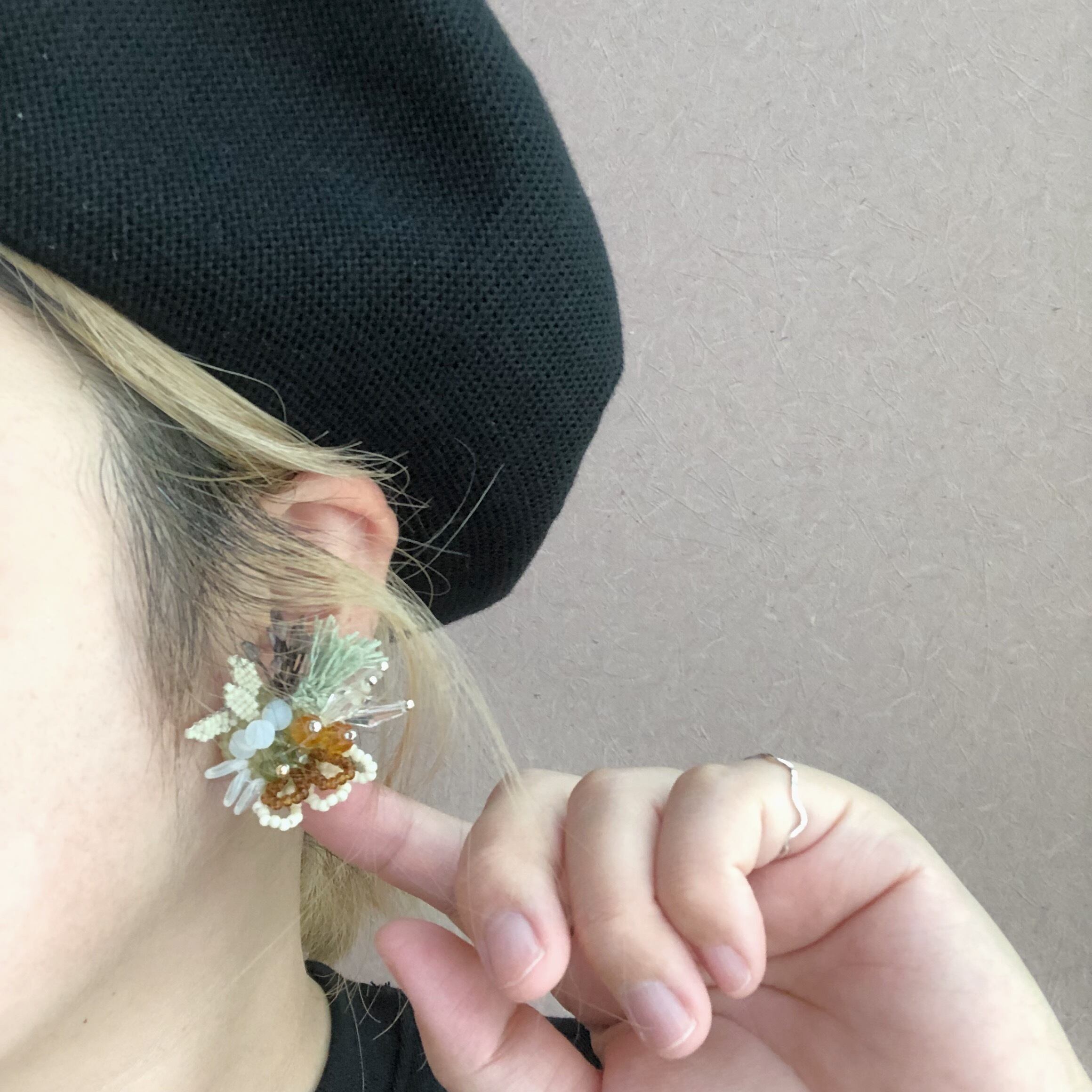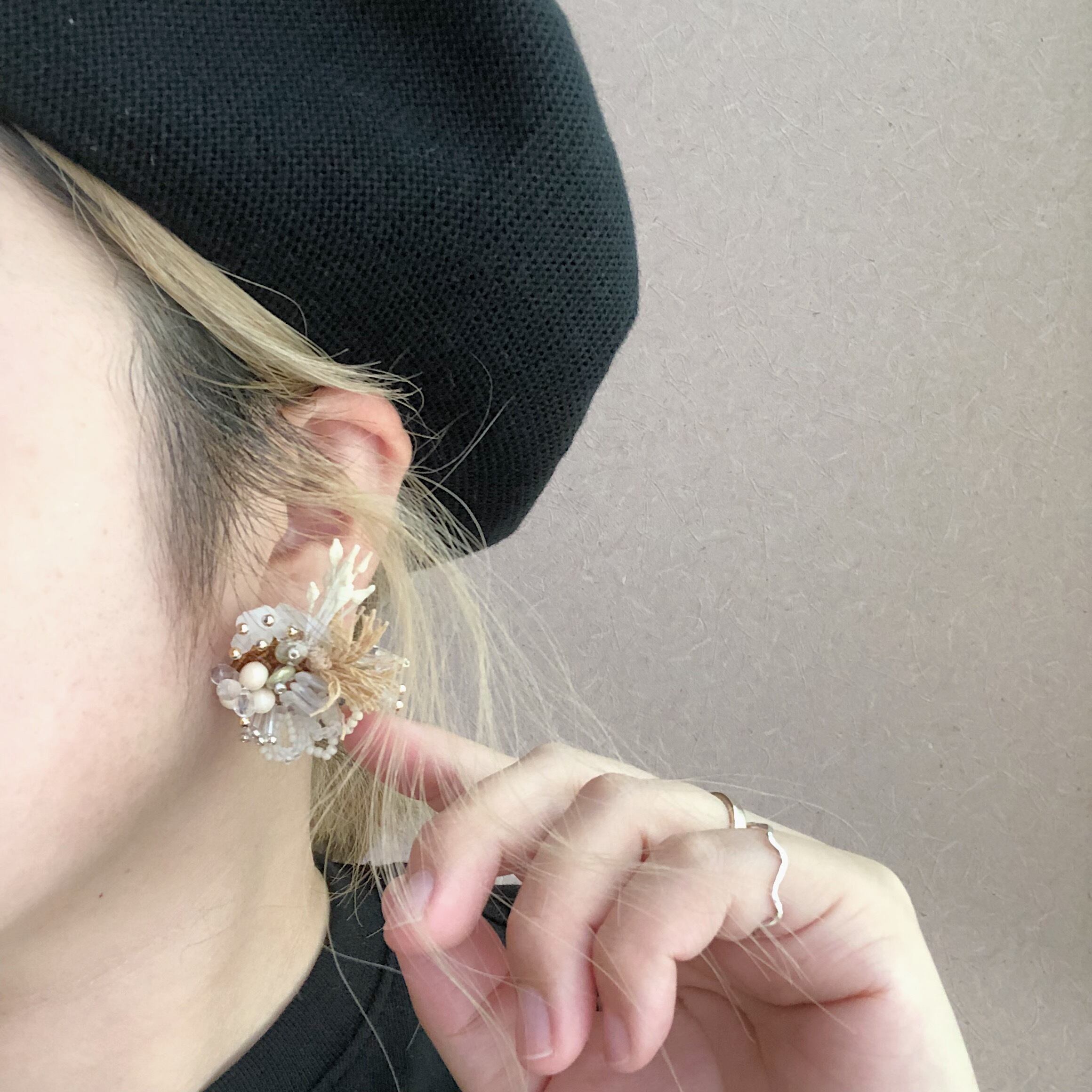 小さめながらもボリュームのあるアクセサリーで、顔まわりを華やかにしてくれます。