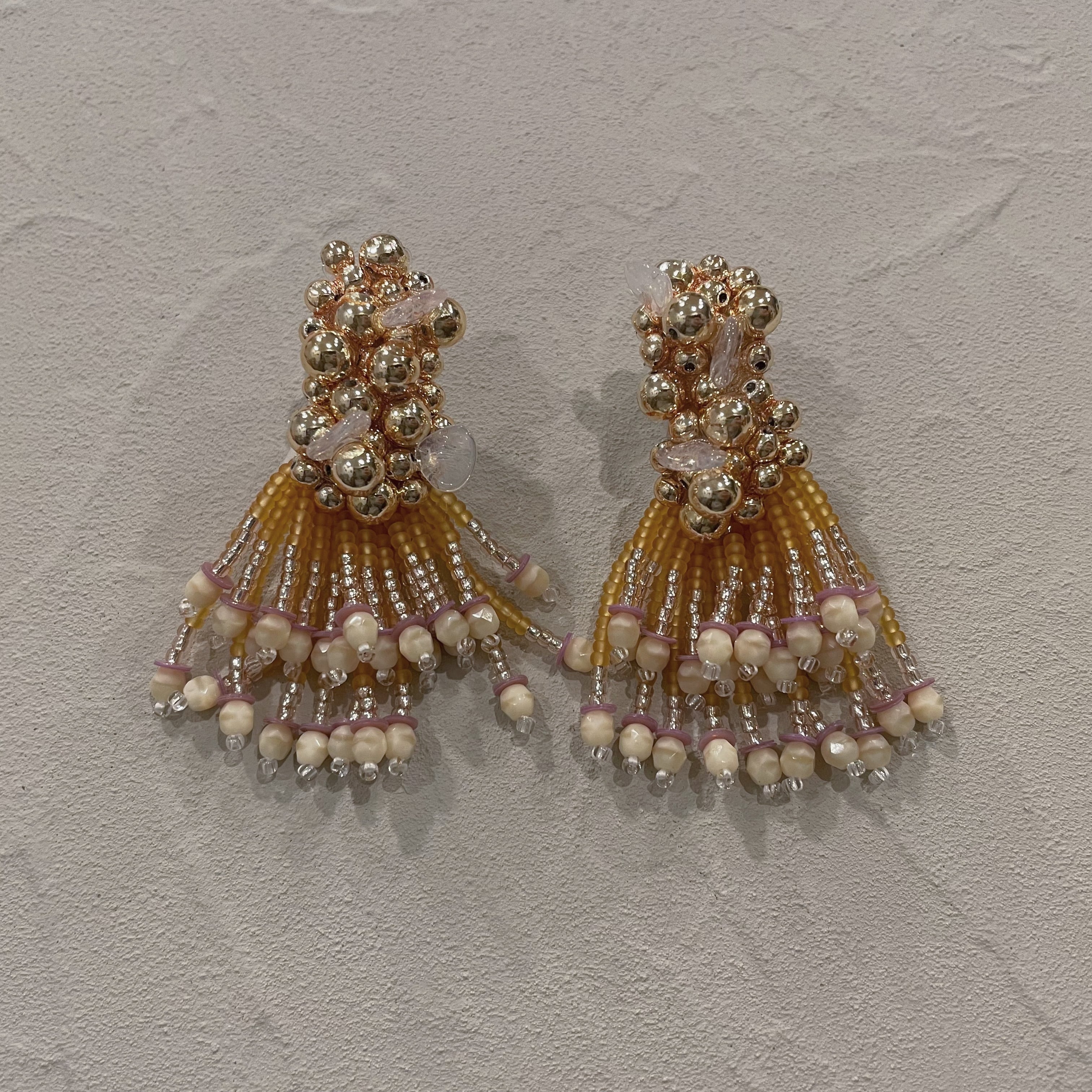 ボヘミアンチックになりすぎないように、シルバー&ゴールドのボールでカジュアルモードな雰囲気に。