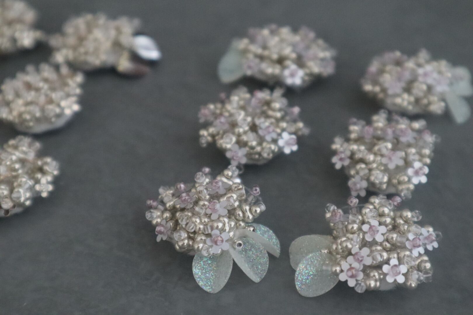 マットシルバーのお花の形のフランスのインポートスパンコールを散りばめました。