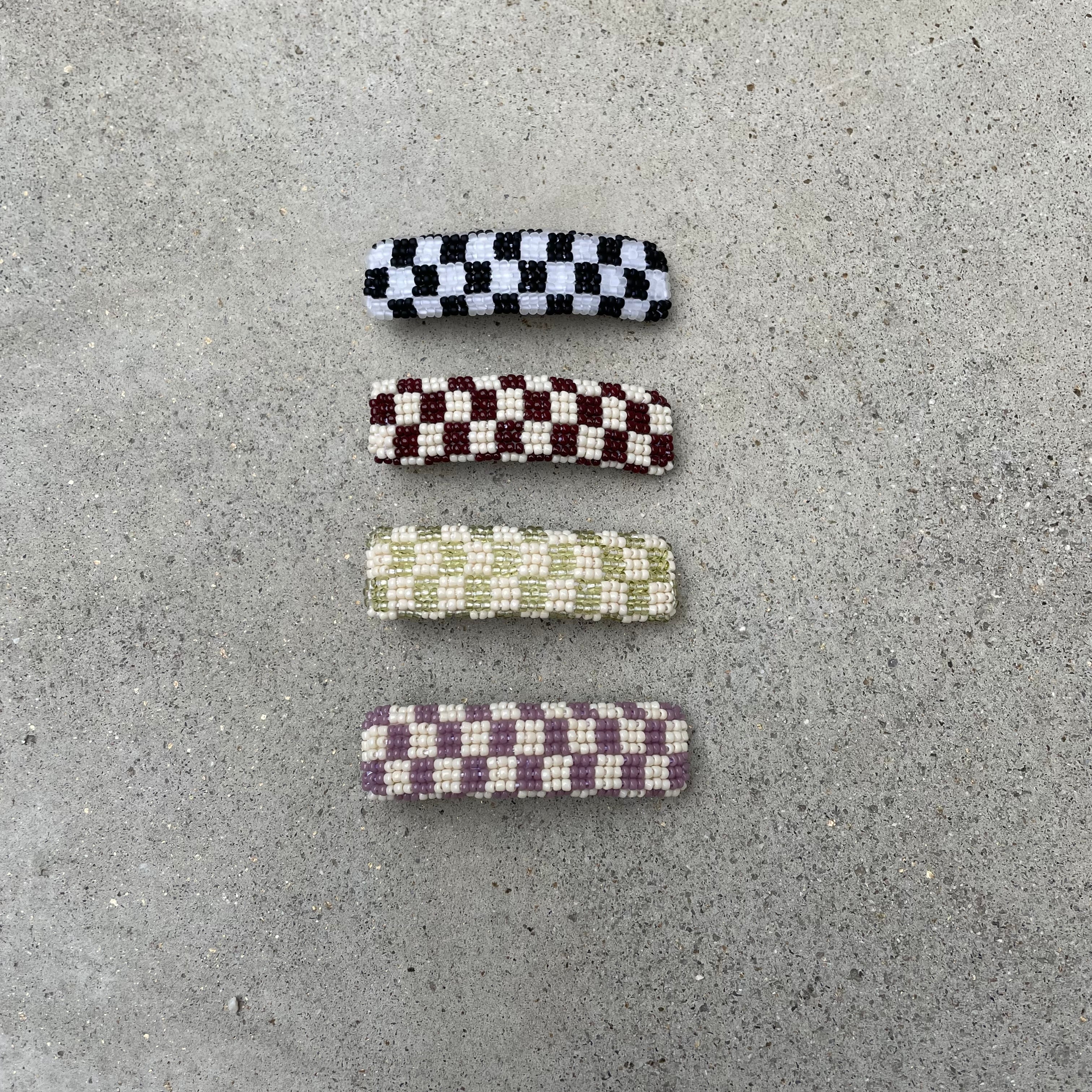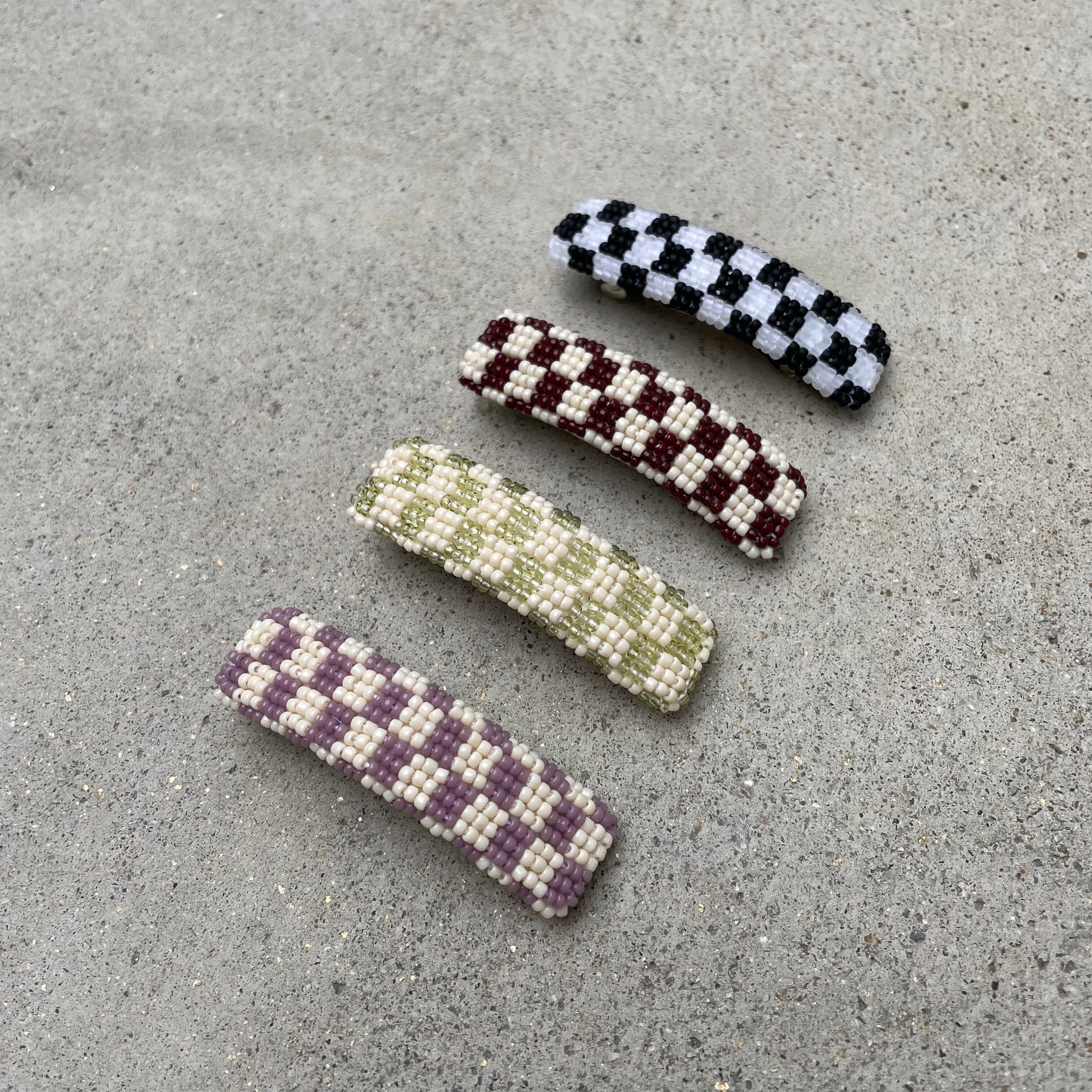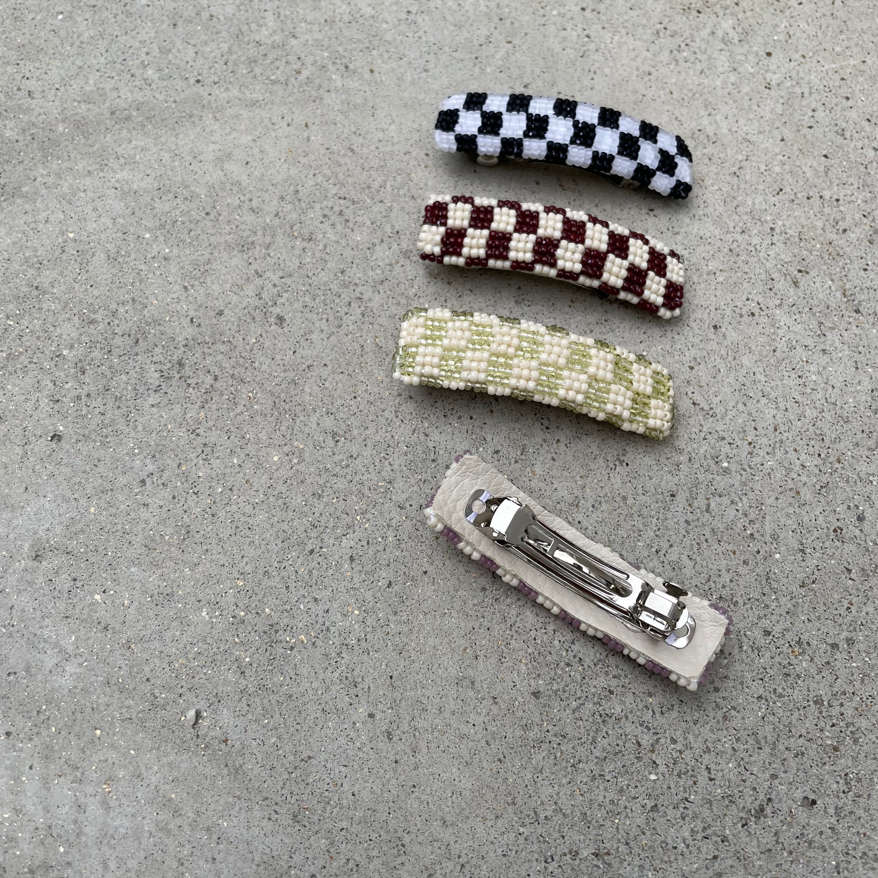 チェッカーフラッグ柄のヘアアクセサリーです。