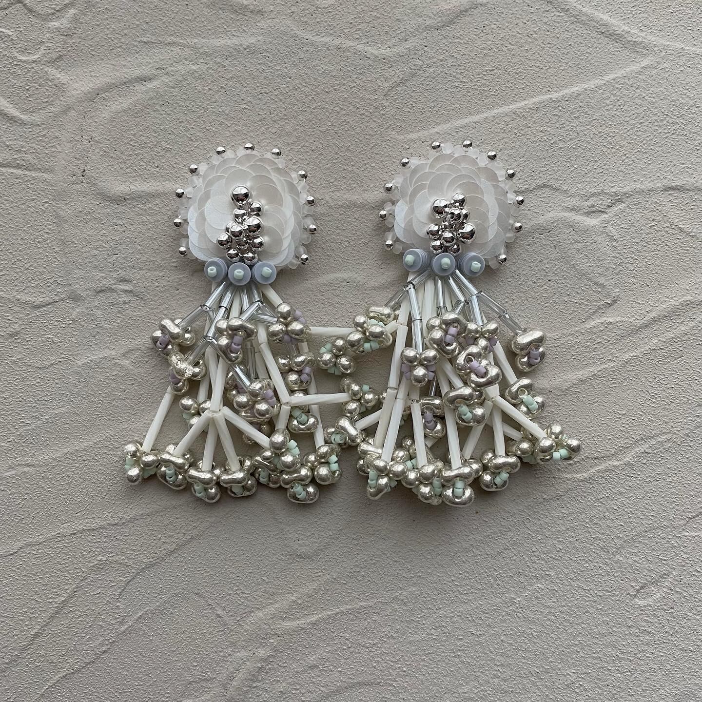 素材:フランス産スパンコール、シルバーパール、国産シードビーズ、チェコビーズ、国産ガラスビーズ、