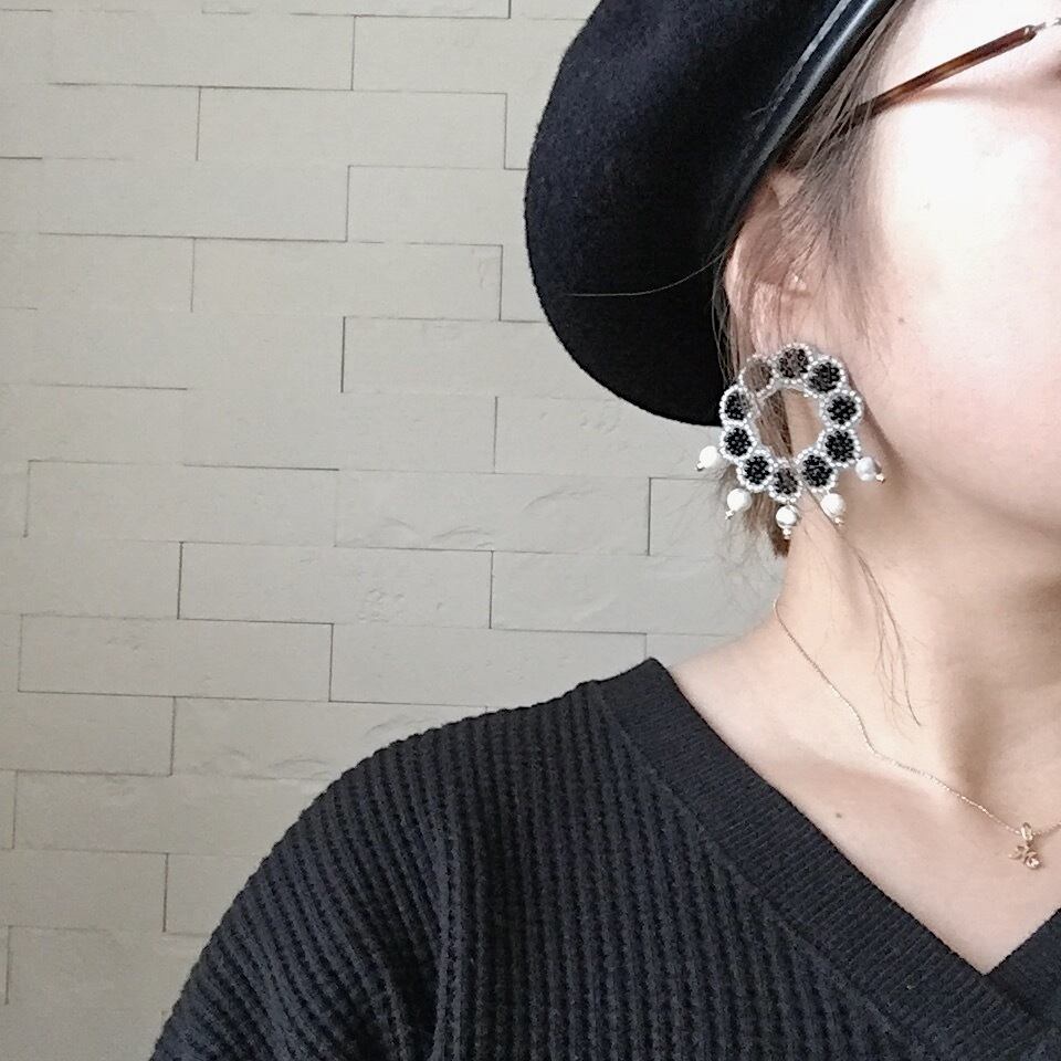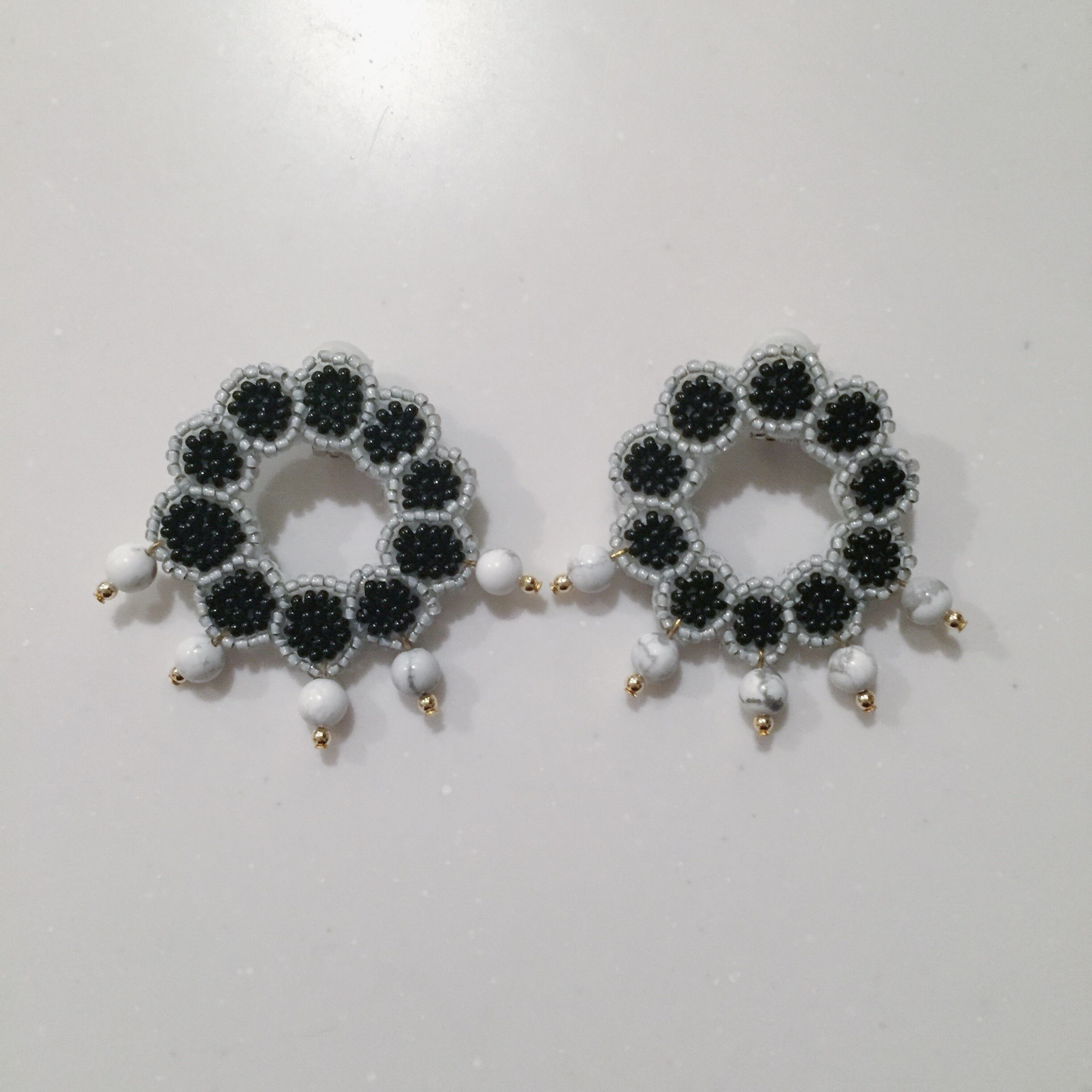 ビーズ刺繍の◯が連なったデザインで、ポイントに天然石がついています。