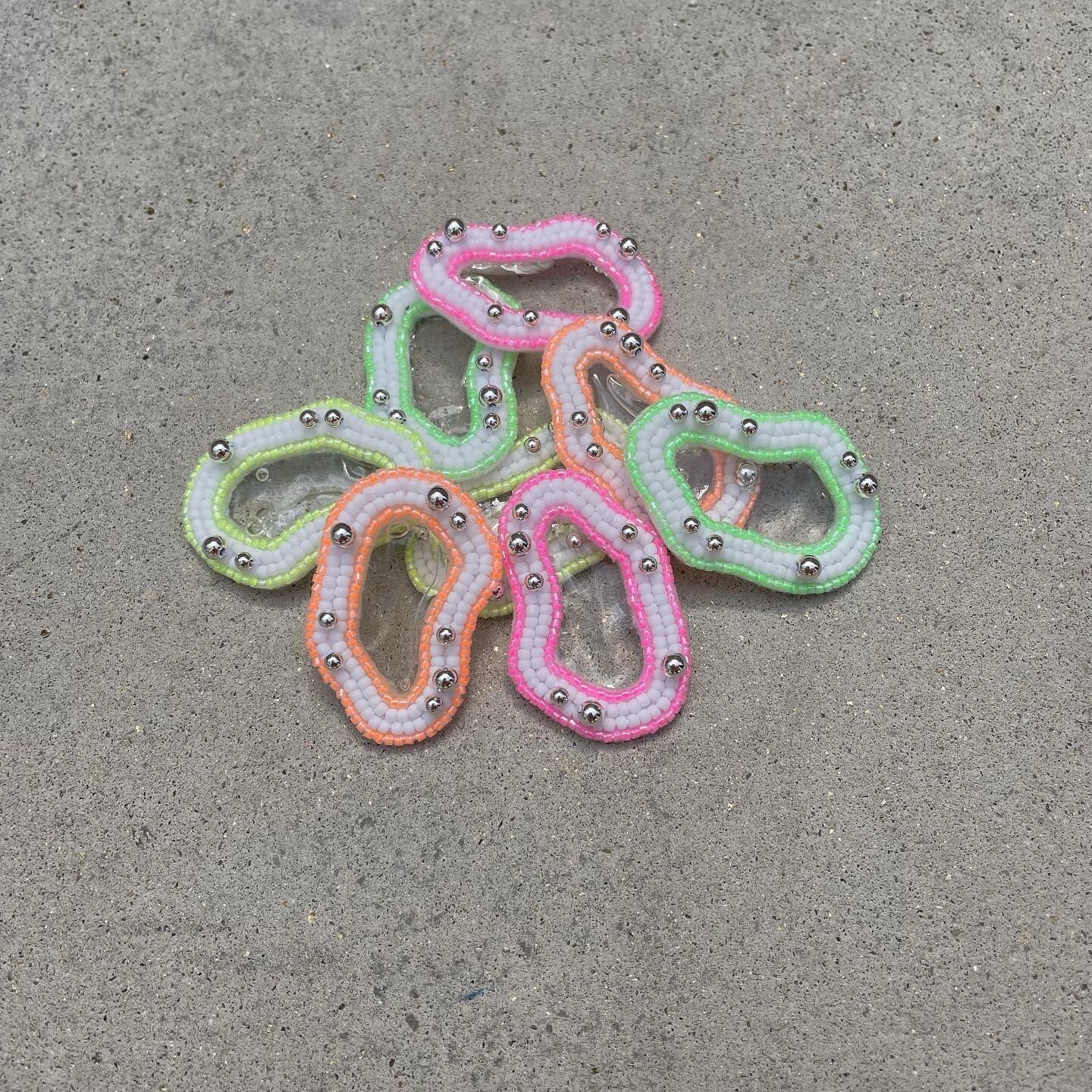 ホワイトのチョークのようなツヤ消しの質感のビーズにネオンカラーが最高にマッチしたカラーリングになっています。