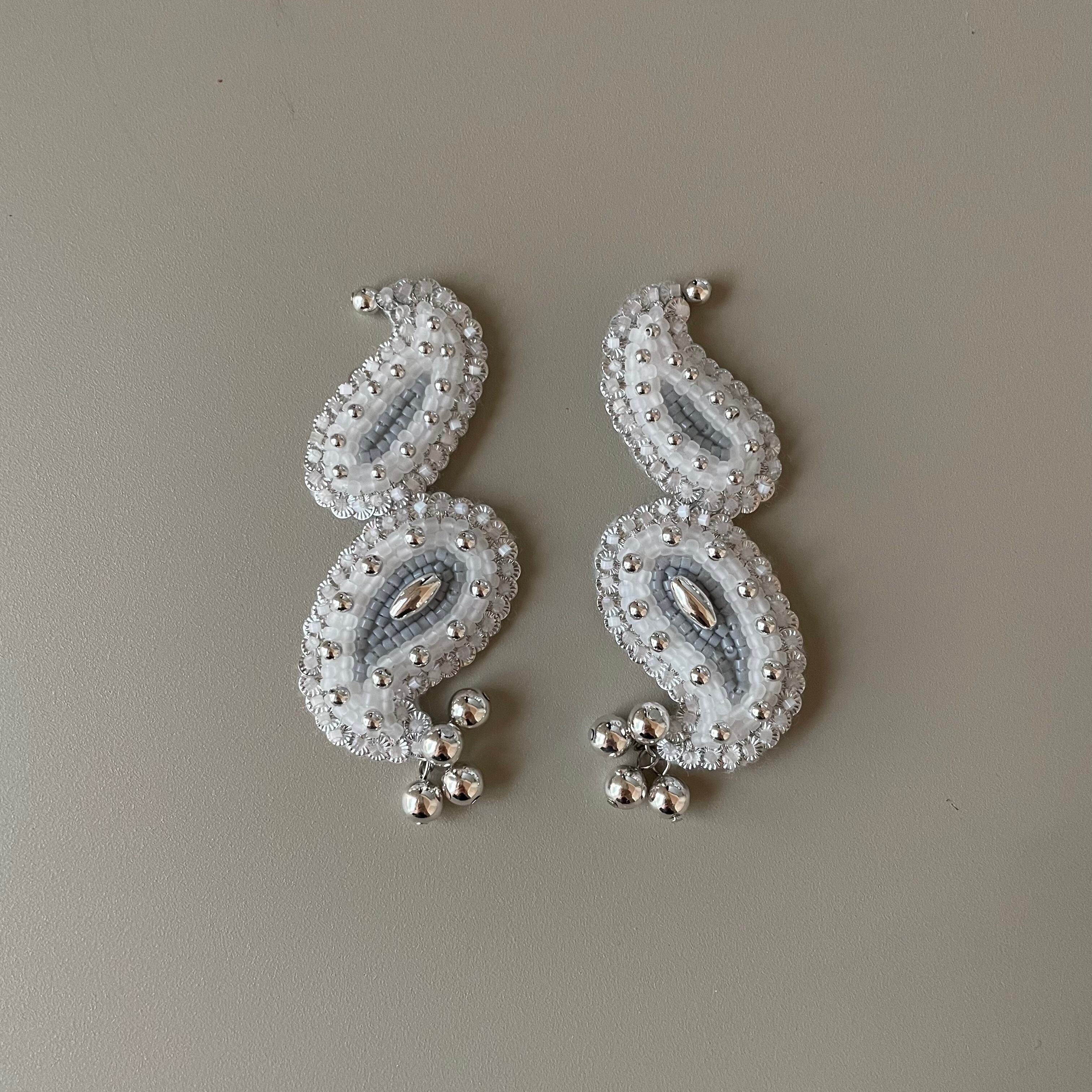 大小のペイズリーを組み合わせた大ぶりの耳飾りです