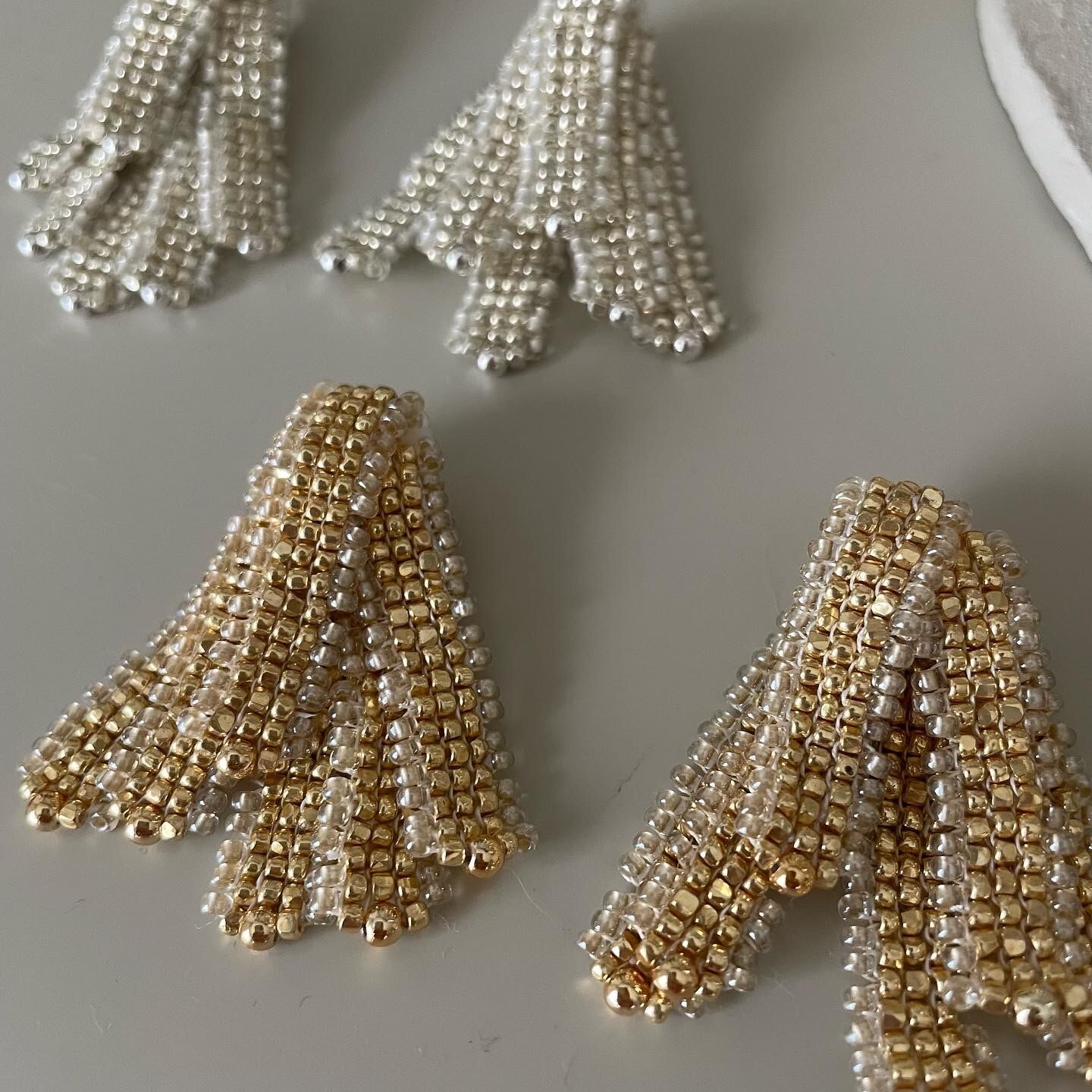 ビーズステッチでパーツを作り、一つ一つ重ねた
