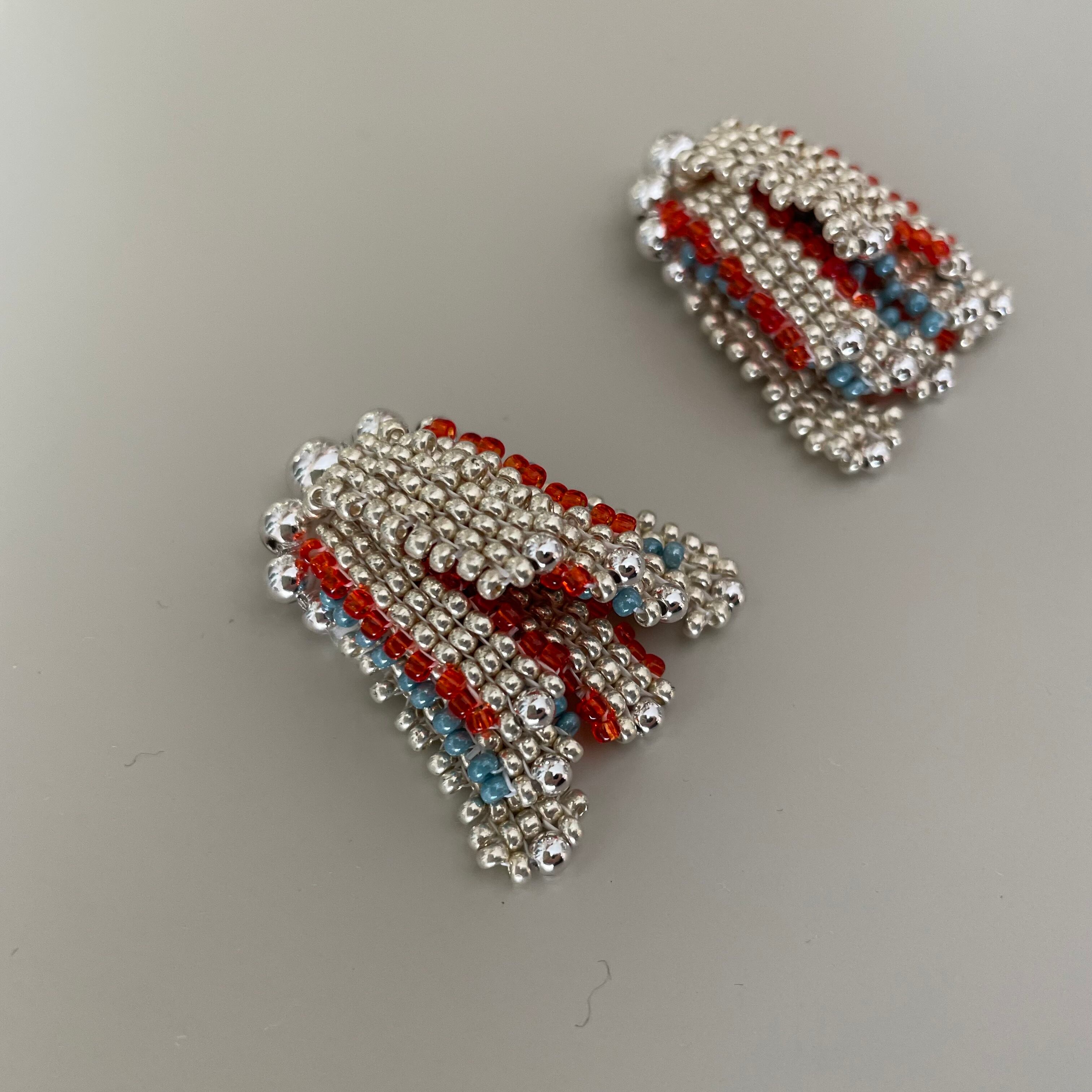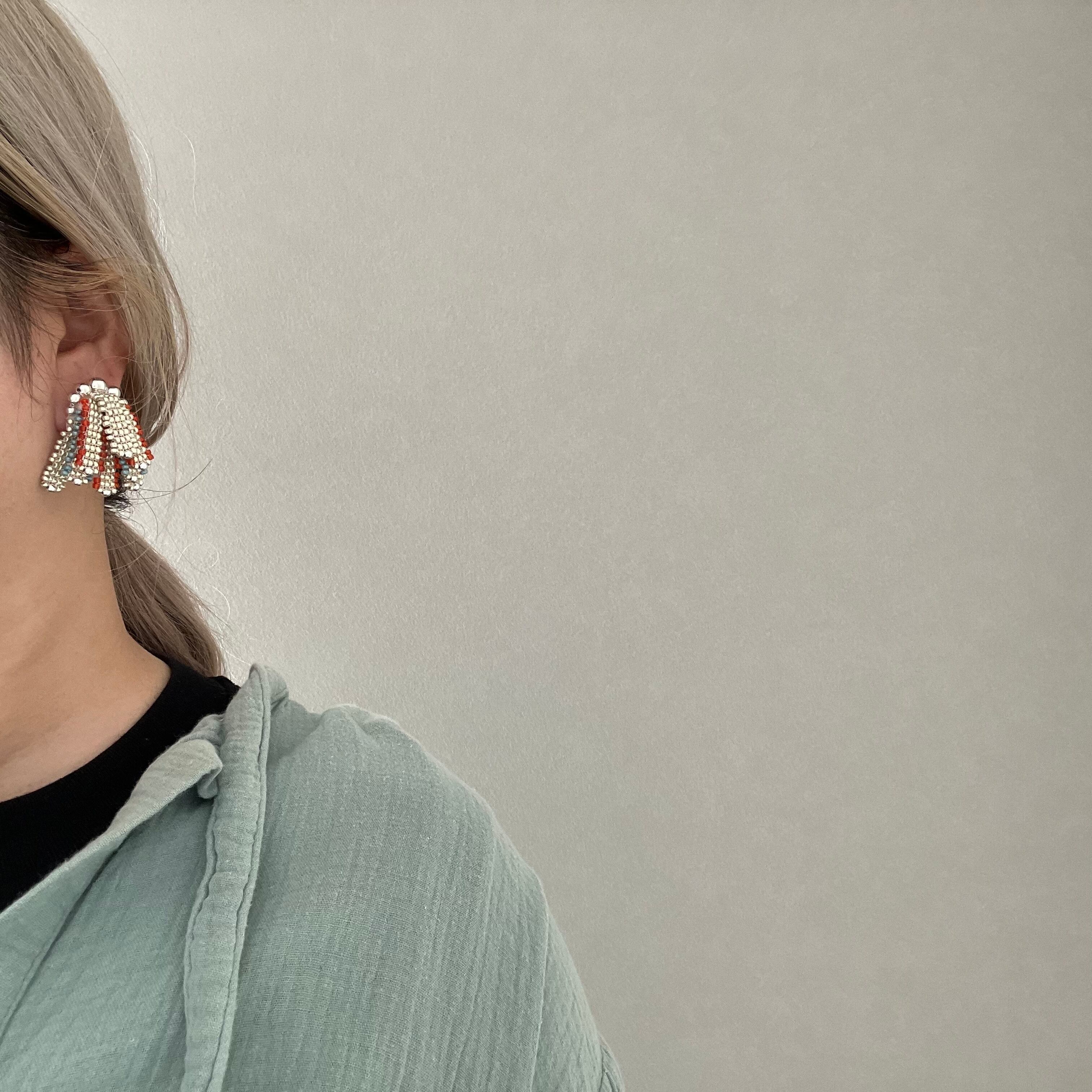 赤などの原色が苦手な方でも、とても取り入れやすい耳飾りになっています。