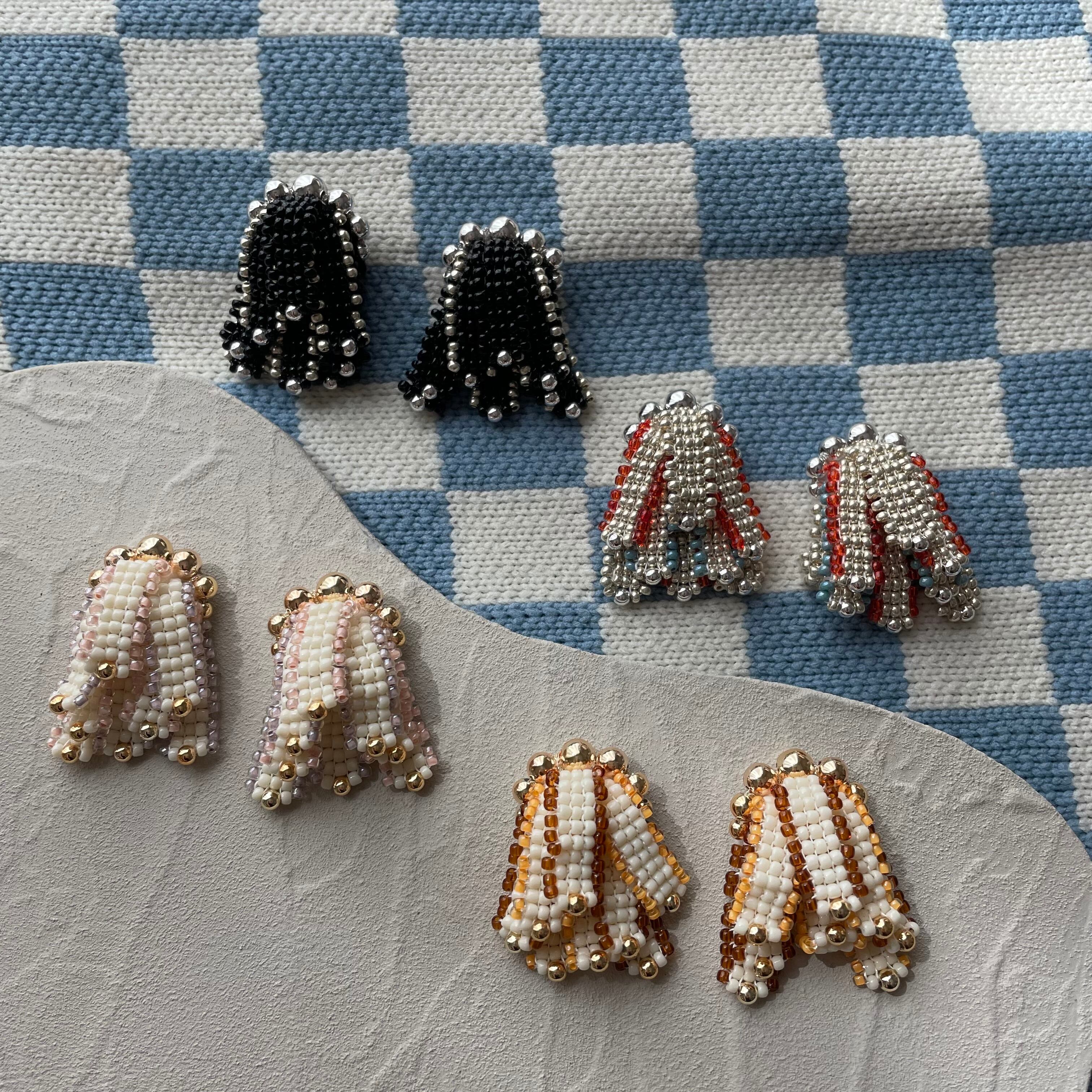 素材:シードビーズ、メタリックパール