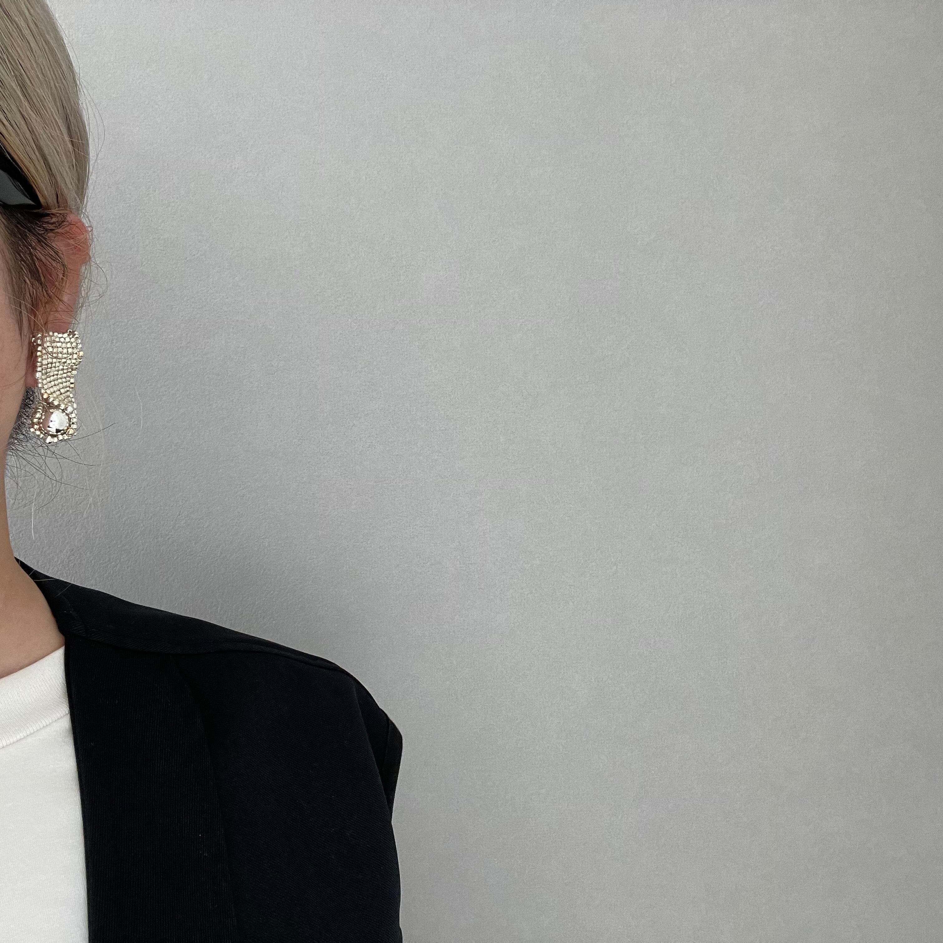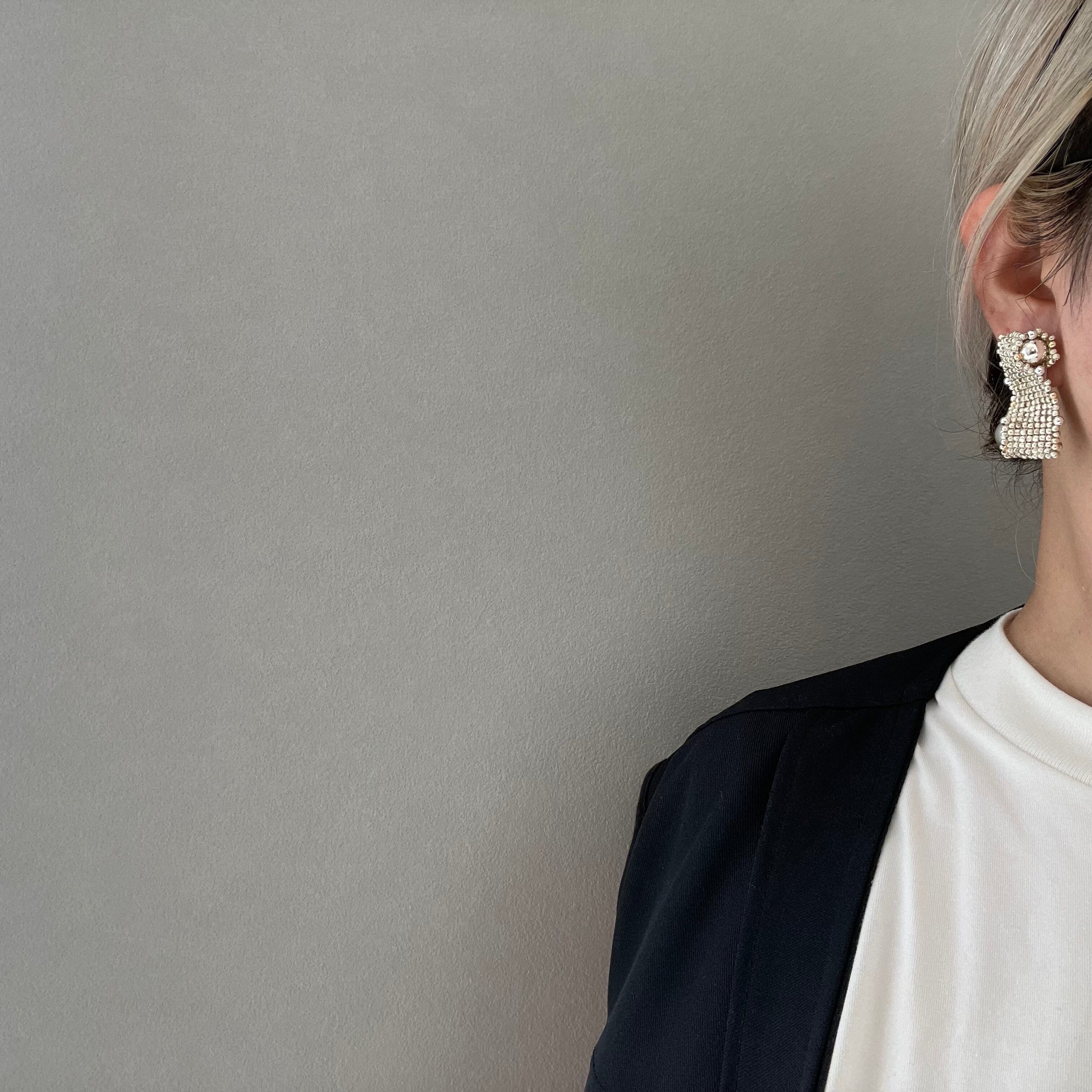 そんなシルバーベースの耳飾りは、ほんの少しゴールドをmixさせることによって、ハードすぎない印象になっており、ゴールド派の方でもつけやすいものになっています。