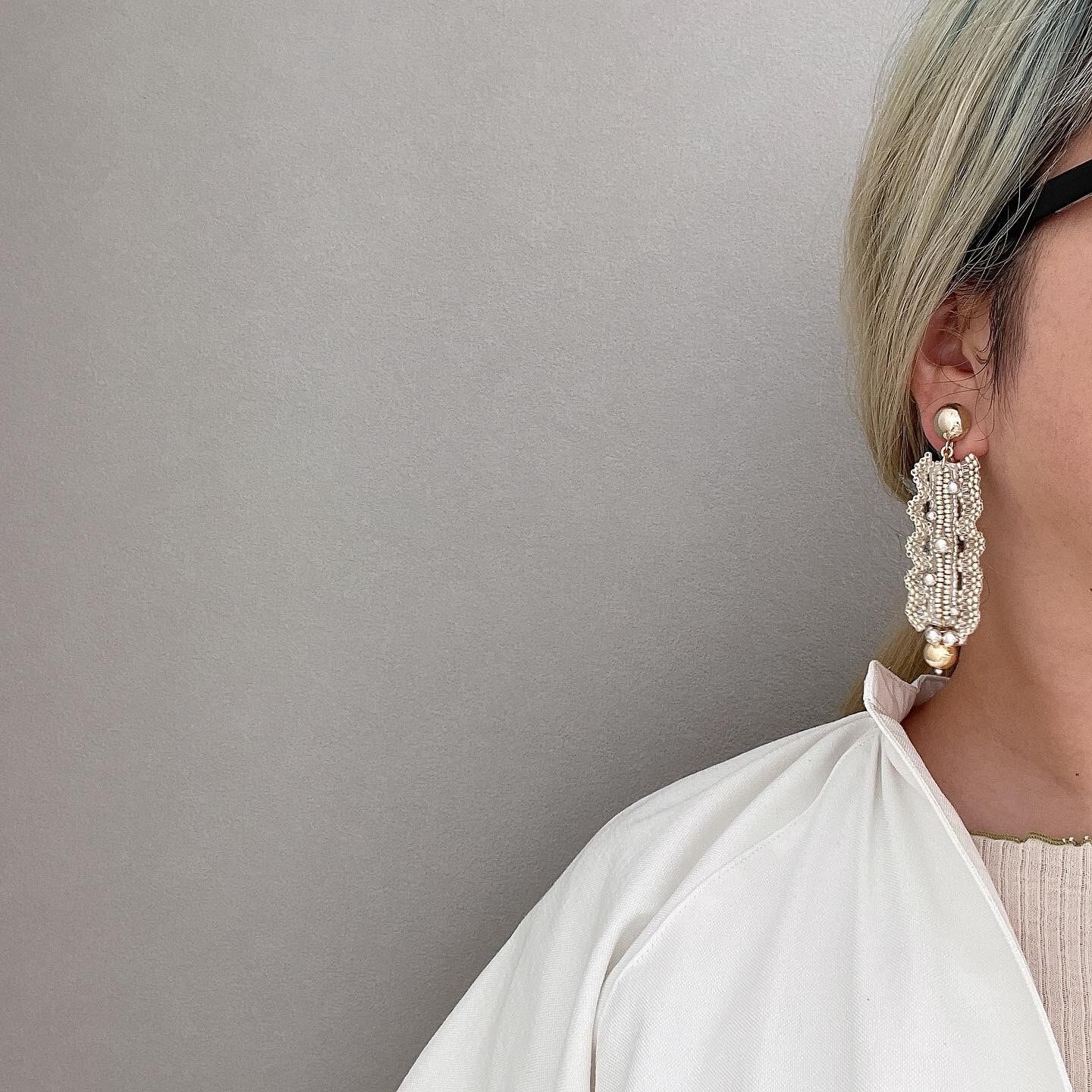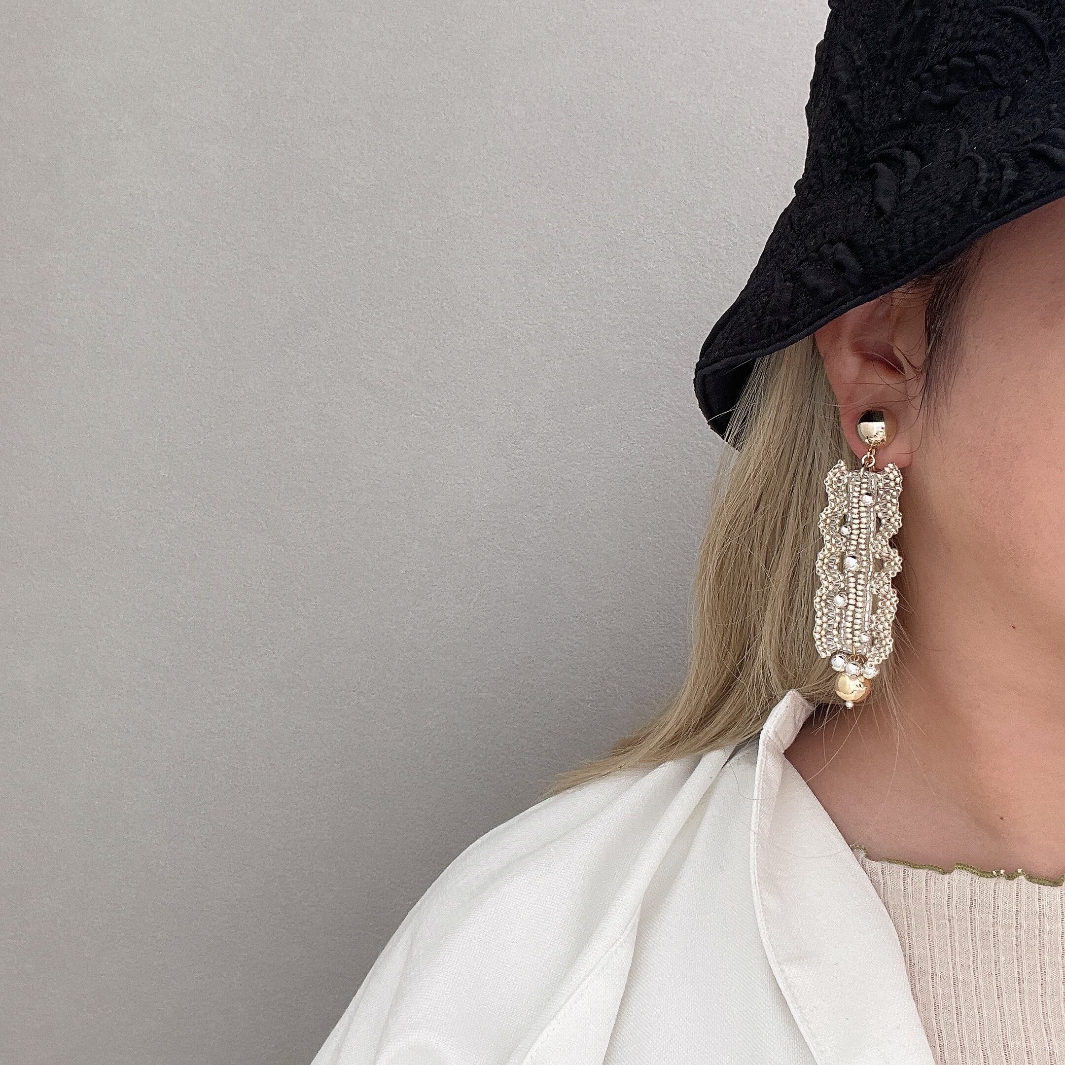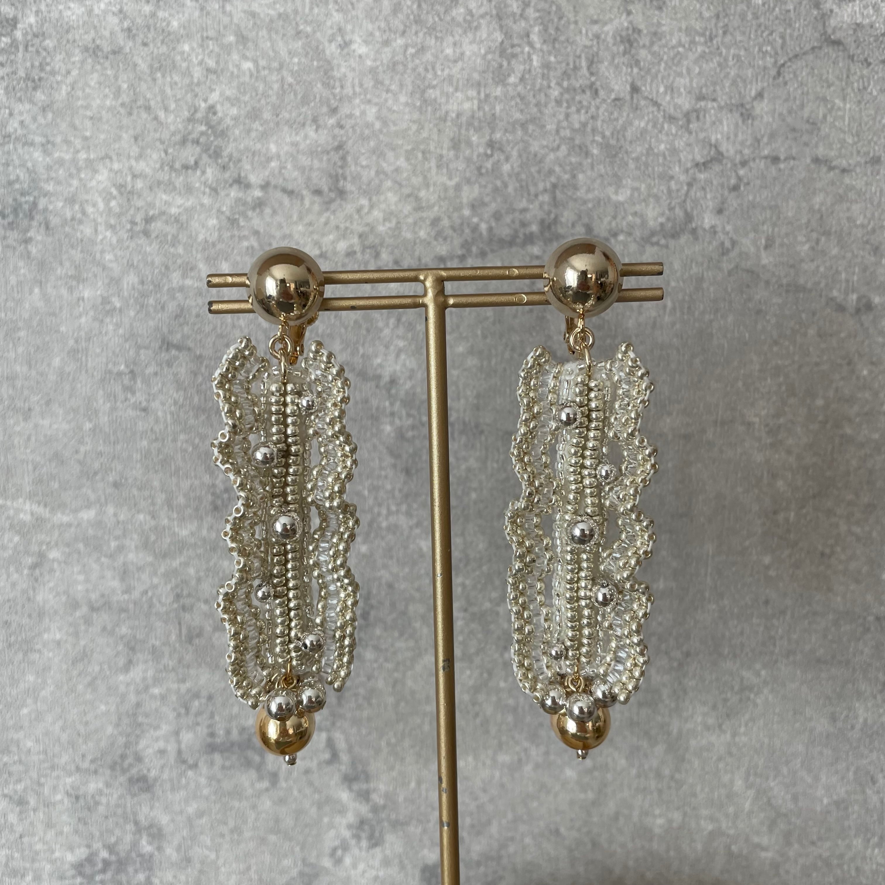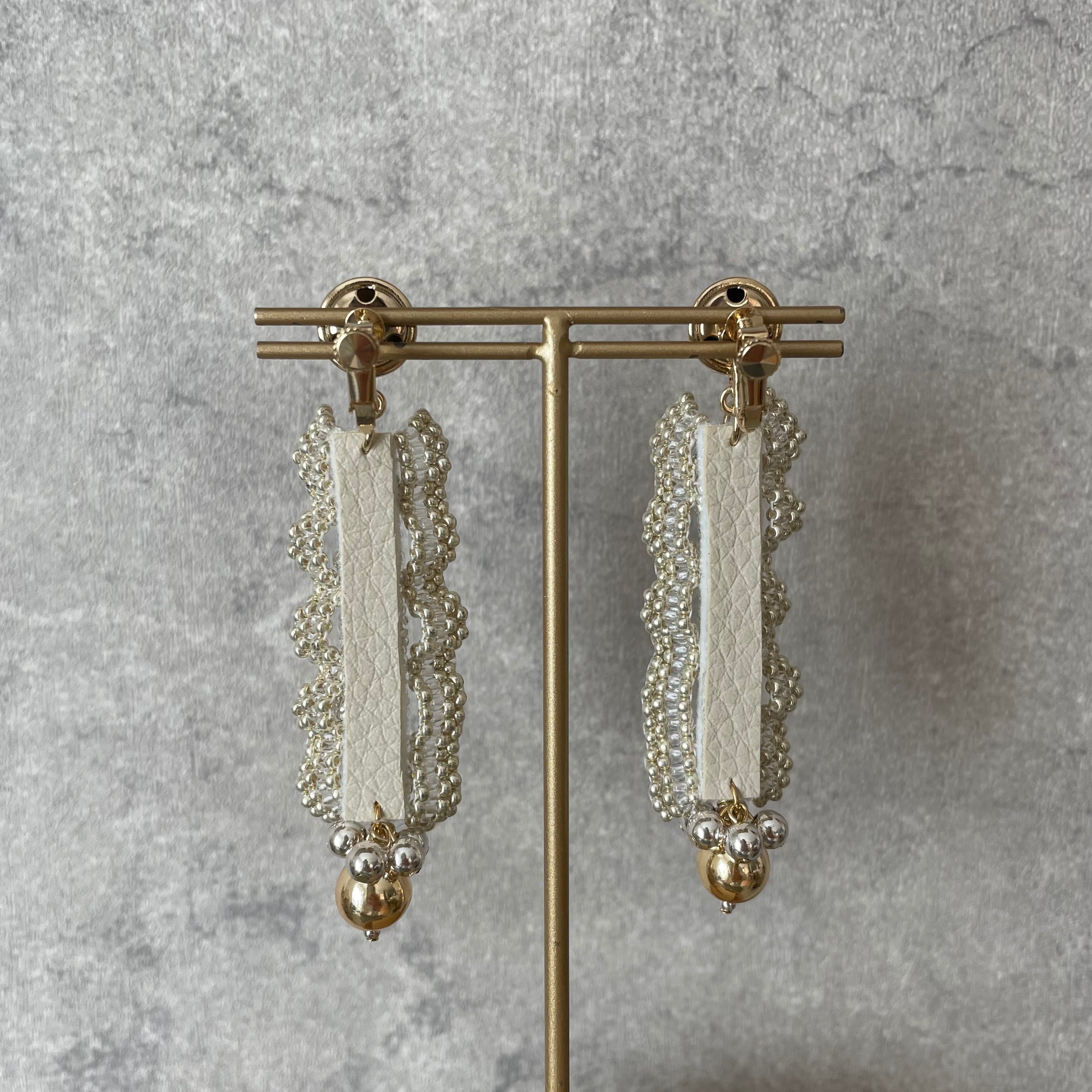 スティック状にビーズ刺繍を施した両サイドに、ビーズ編みでレースのような、リボンのような装飾をしました。