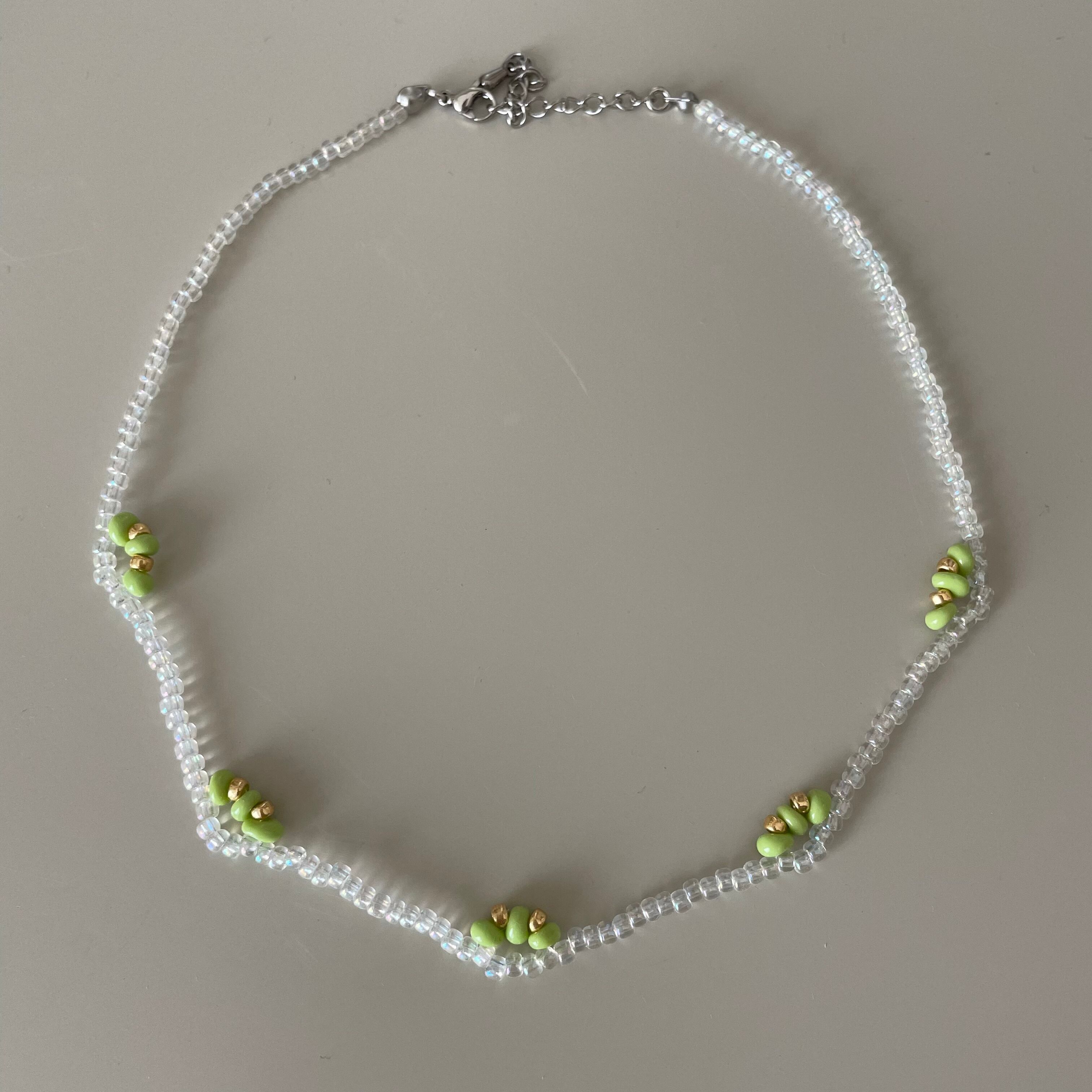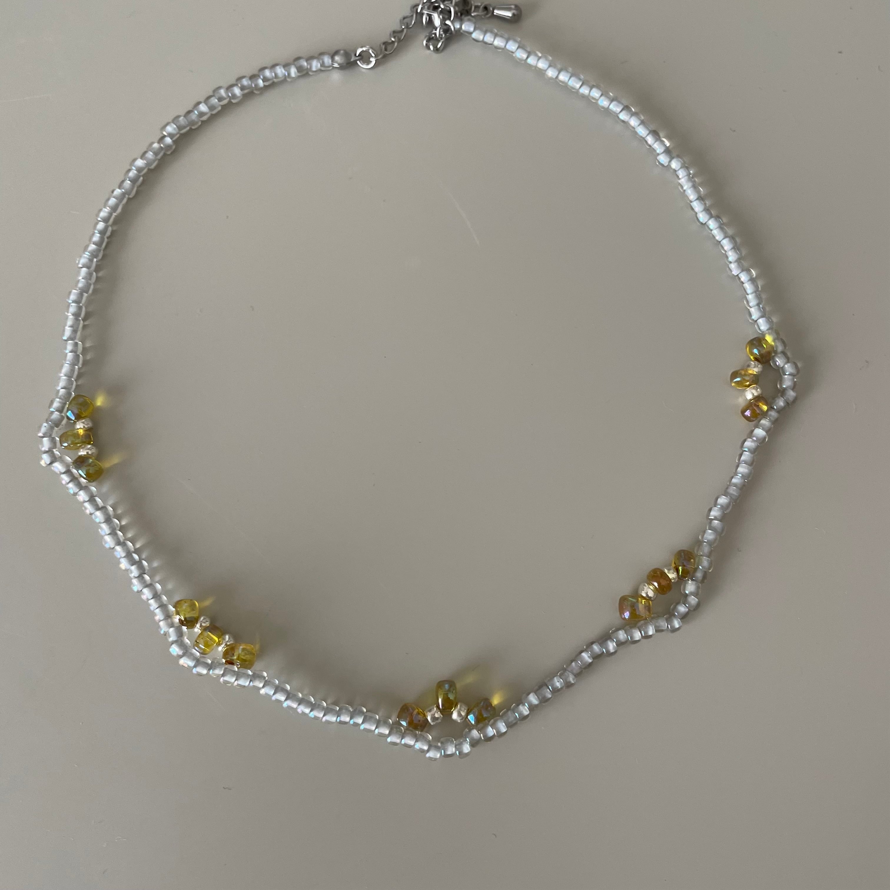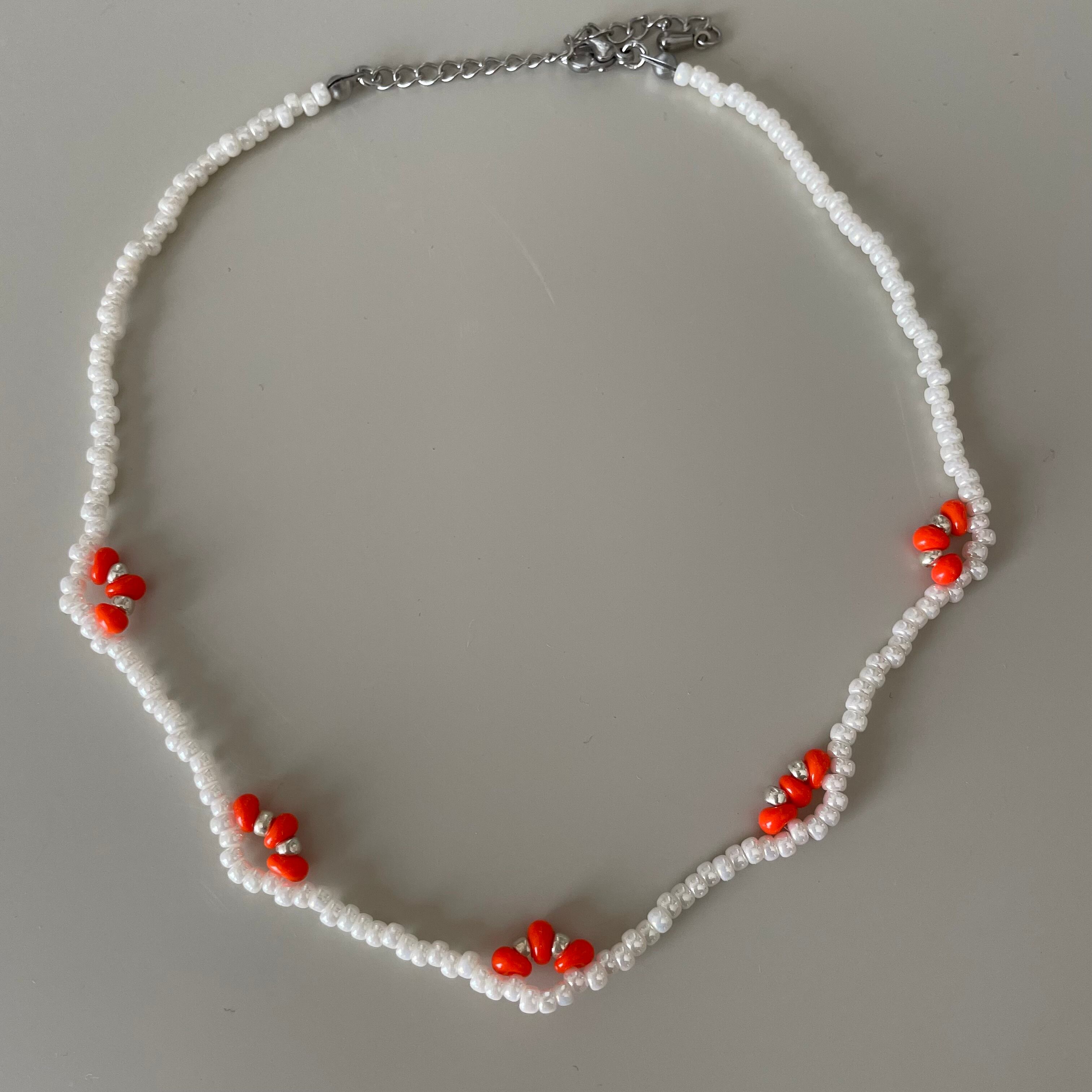 ちょっと大きめなビーズがアクセントになった、可愛らしいネックレスです。