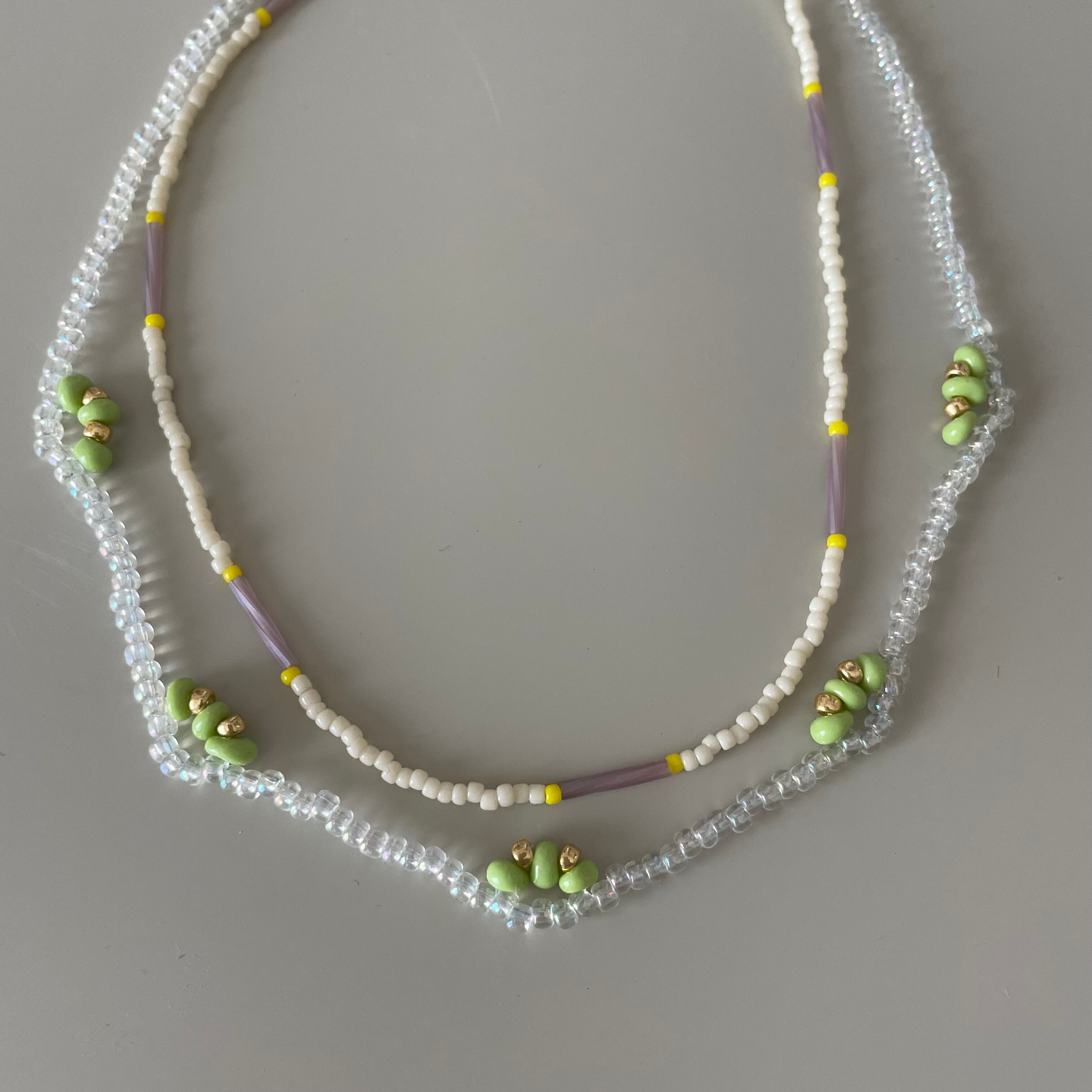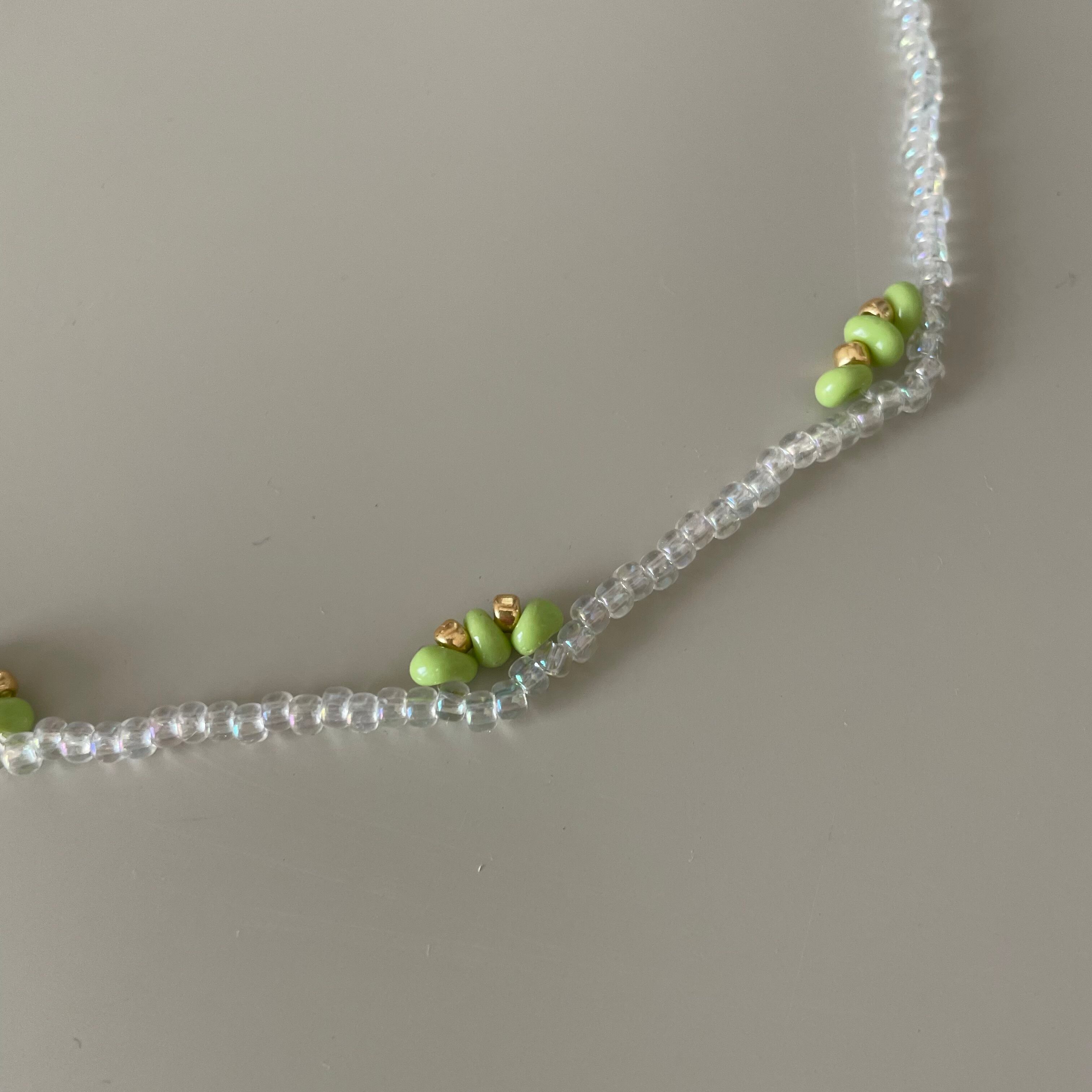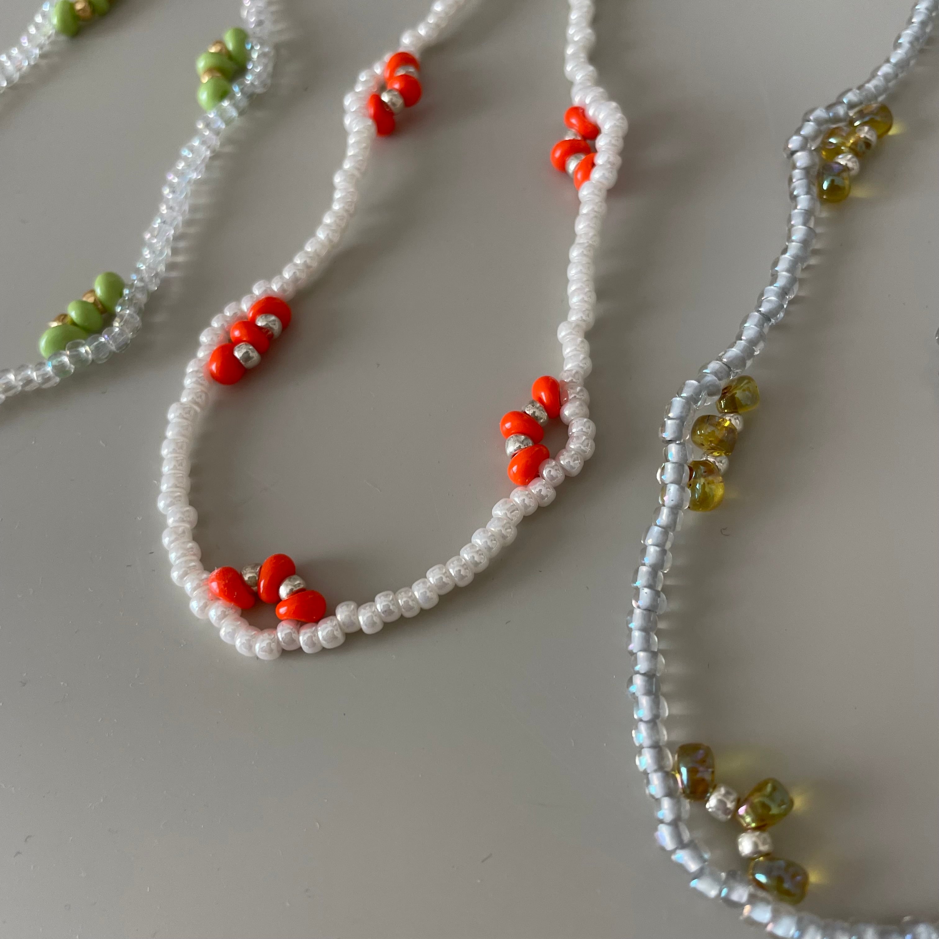 ちょっと大きめなビーズがアクセントになった、可愛らしいネックレスです。