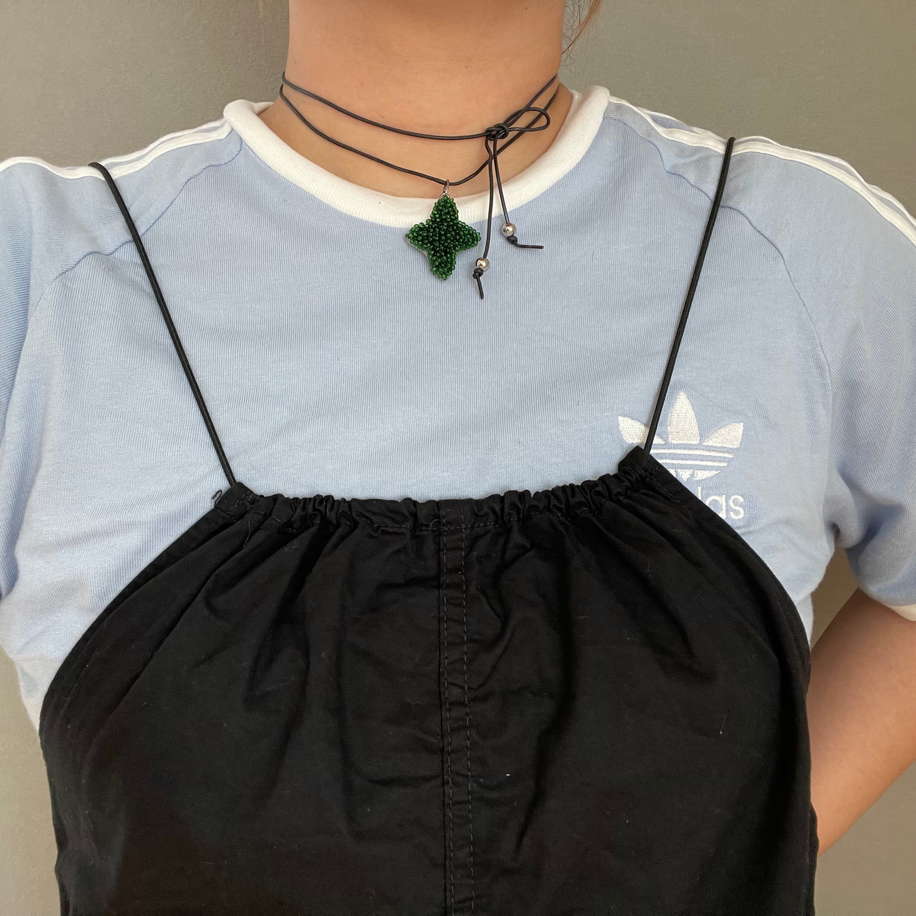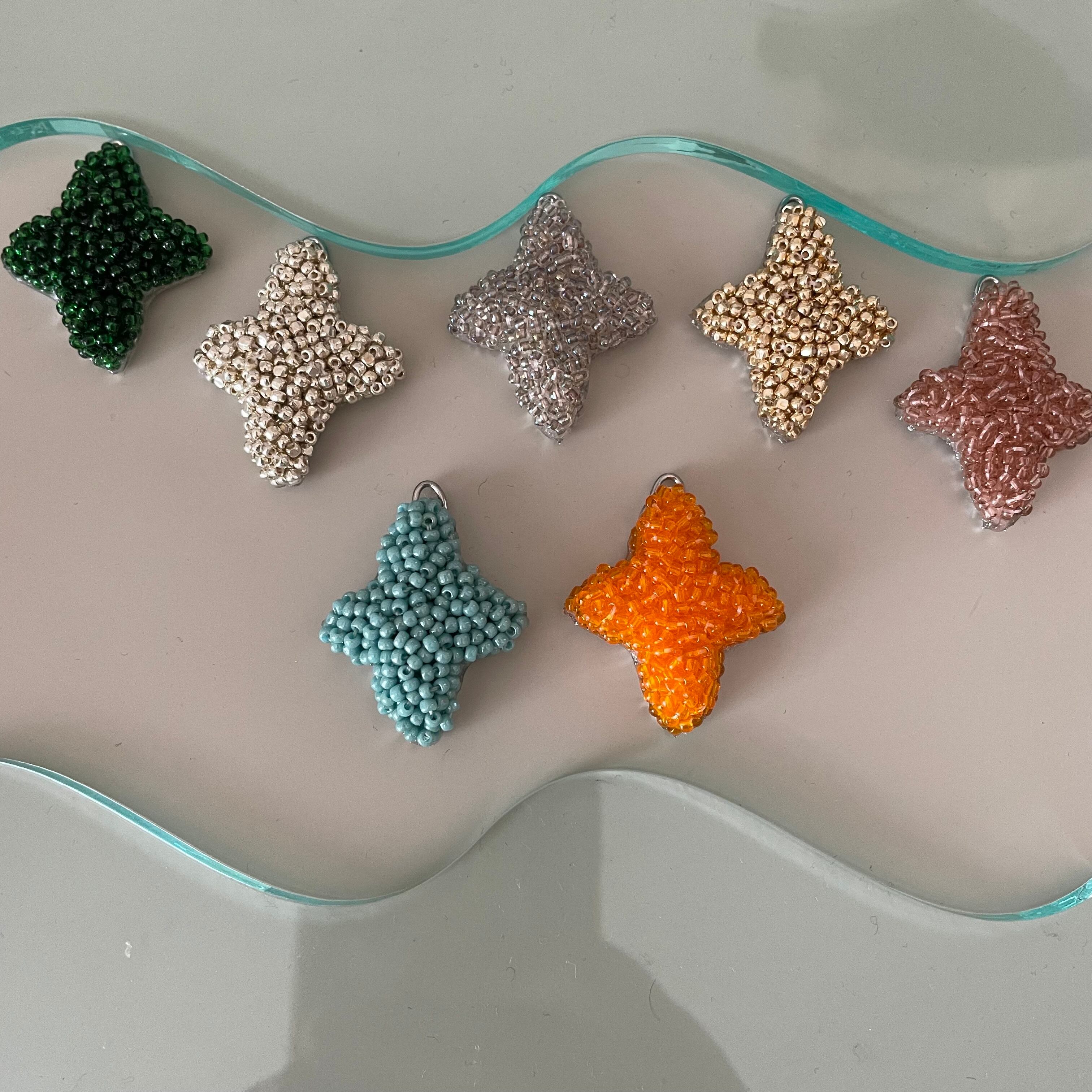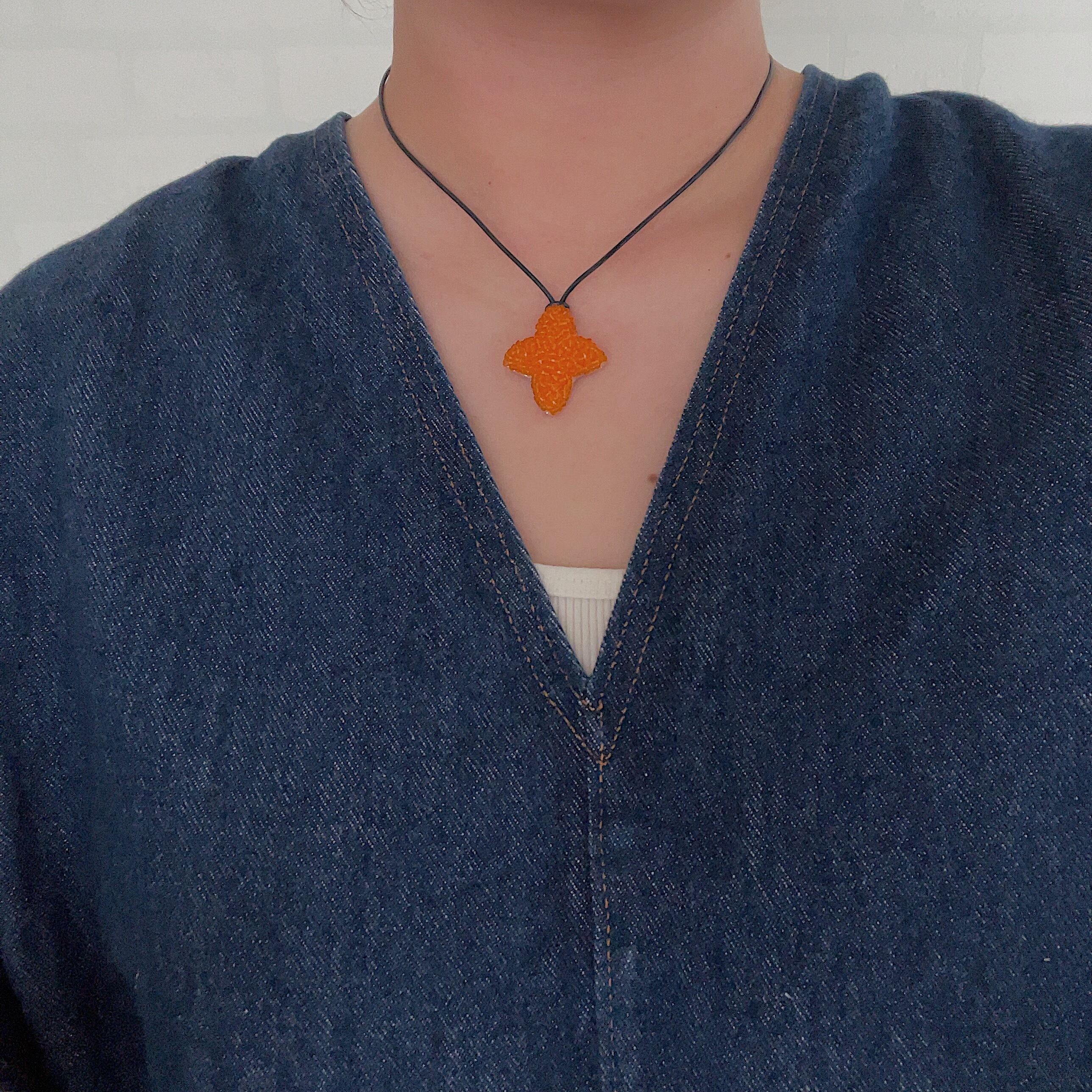 ビーズをランダムに、不規則に刺繍したcrossモチーフのネックレス。