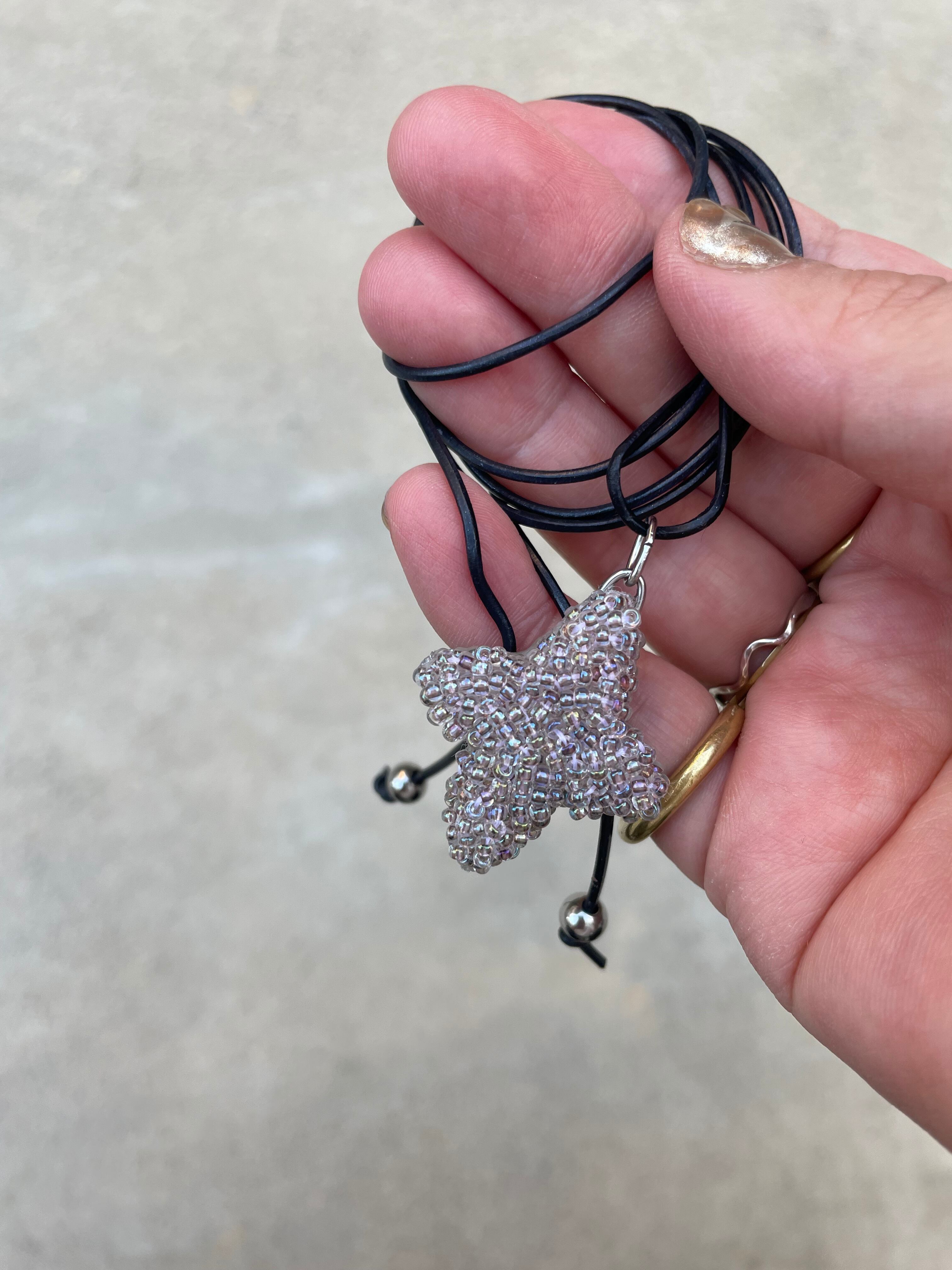 素材:グラスビーズ、レジン樹脂、ミラーパウダー、サージカルステンレス、革紐