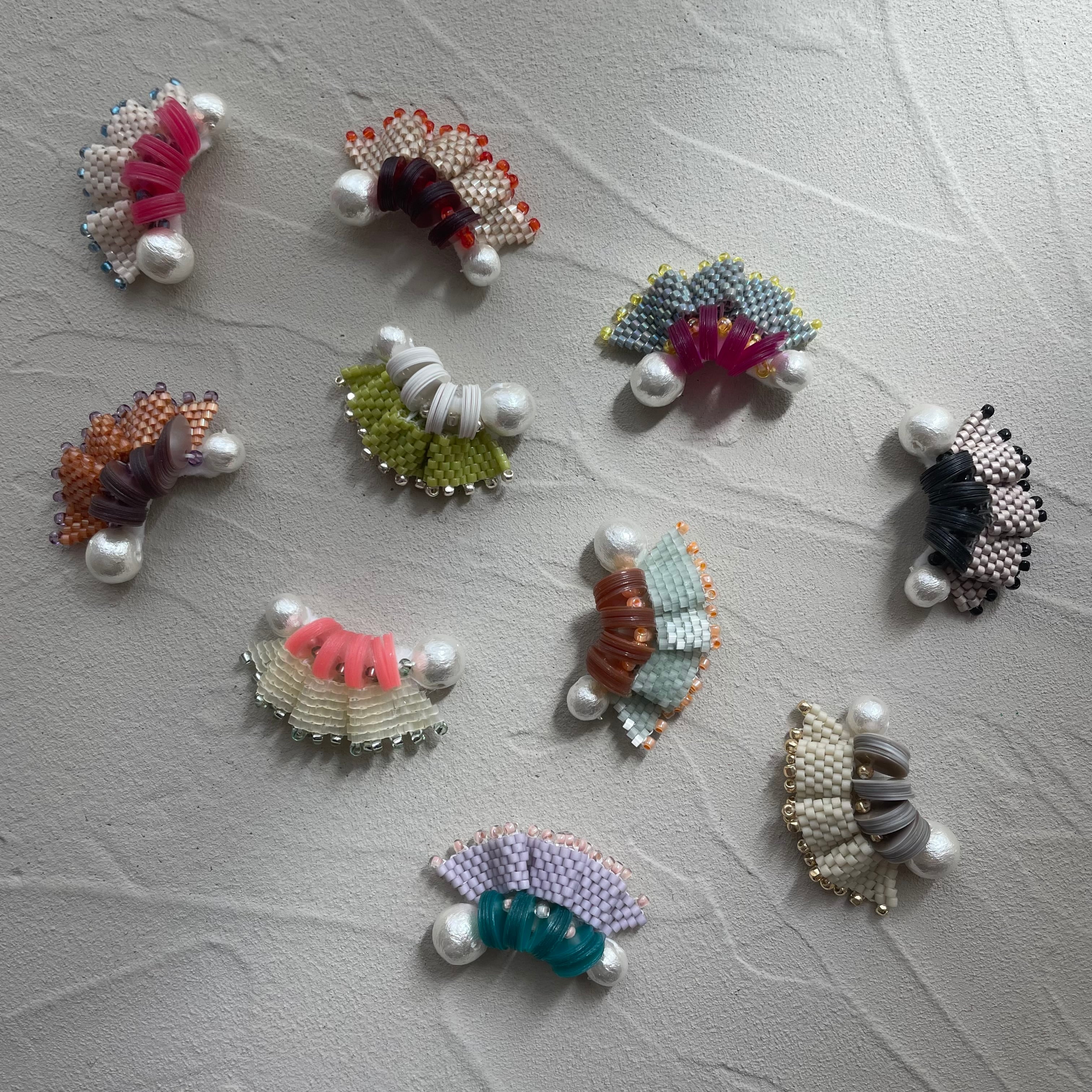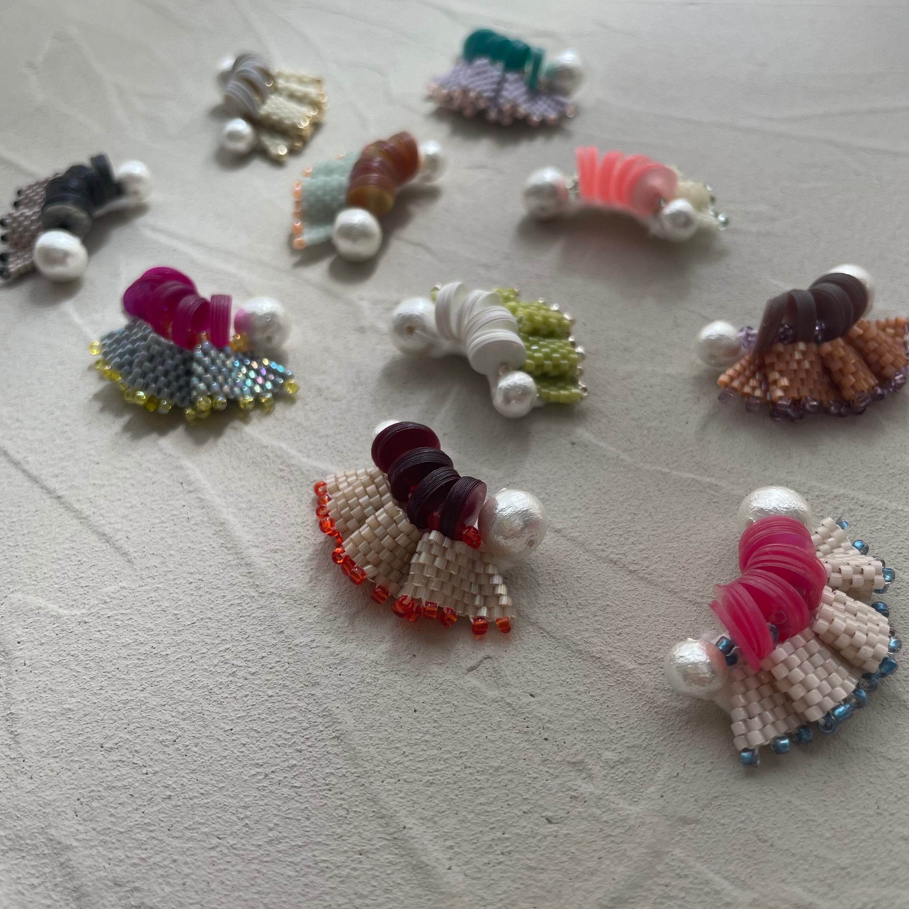 バレリーナの"チュチュ"をイメージしたカラフルな小さめのイヤークリップです。