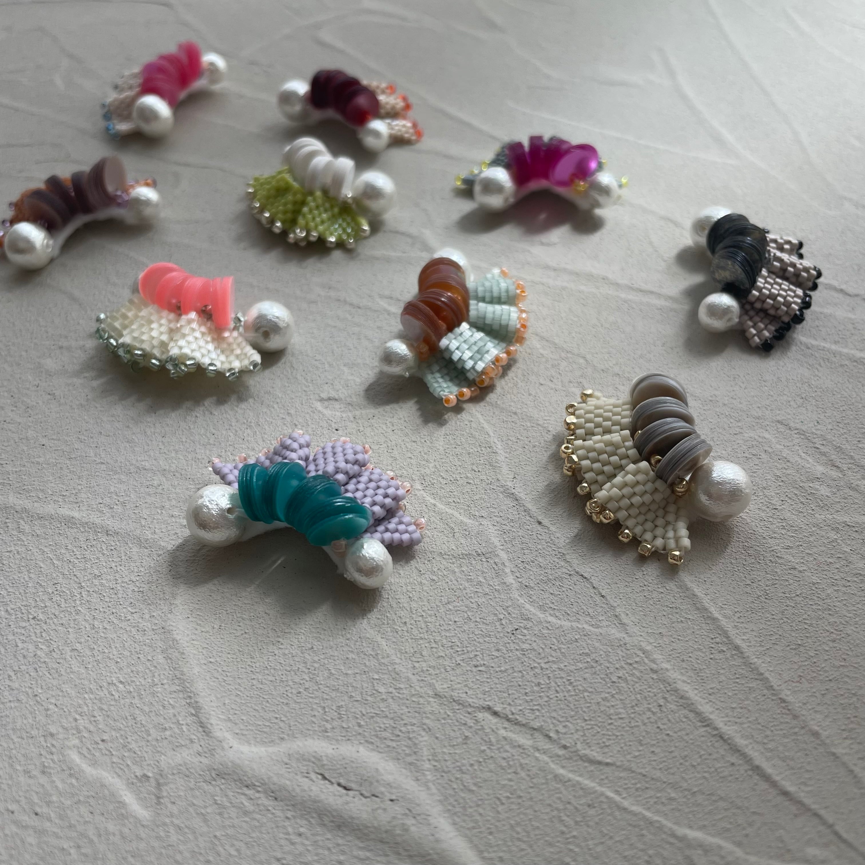 素材:コットンパール、スパンコール、ガラスビーズ、シードビーズ