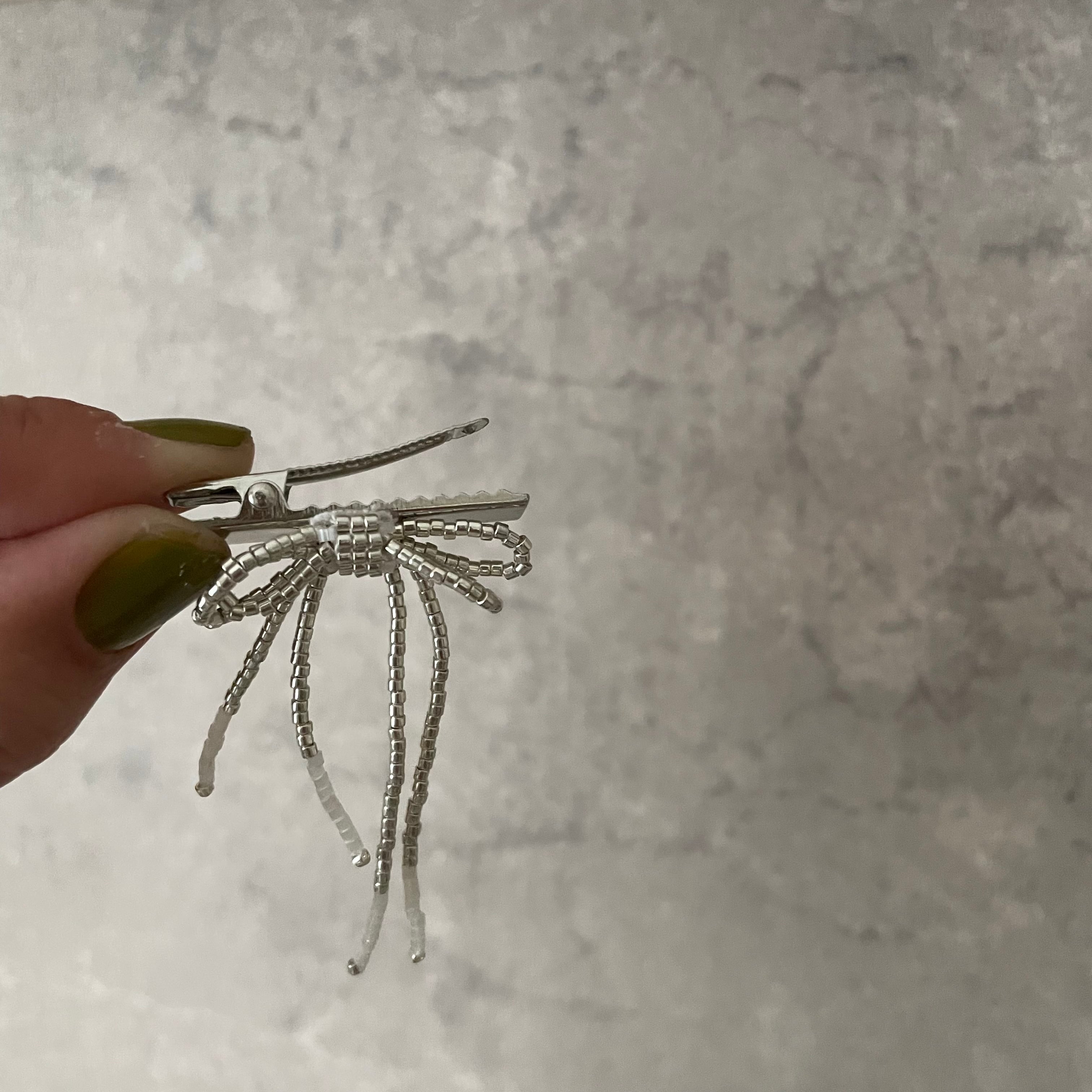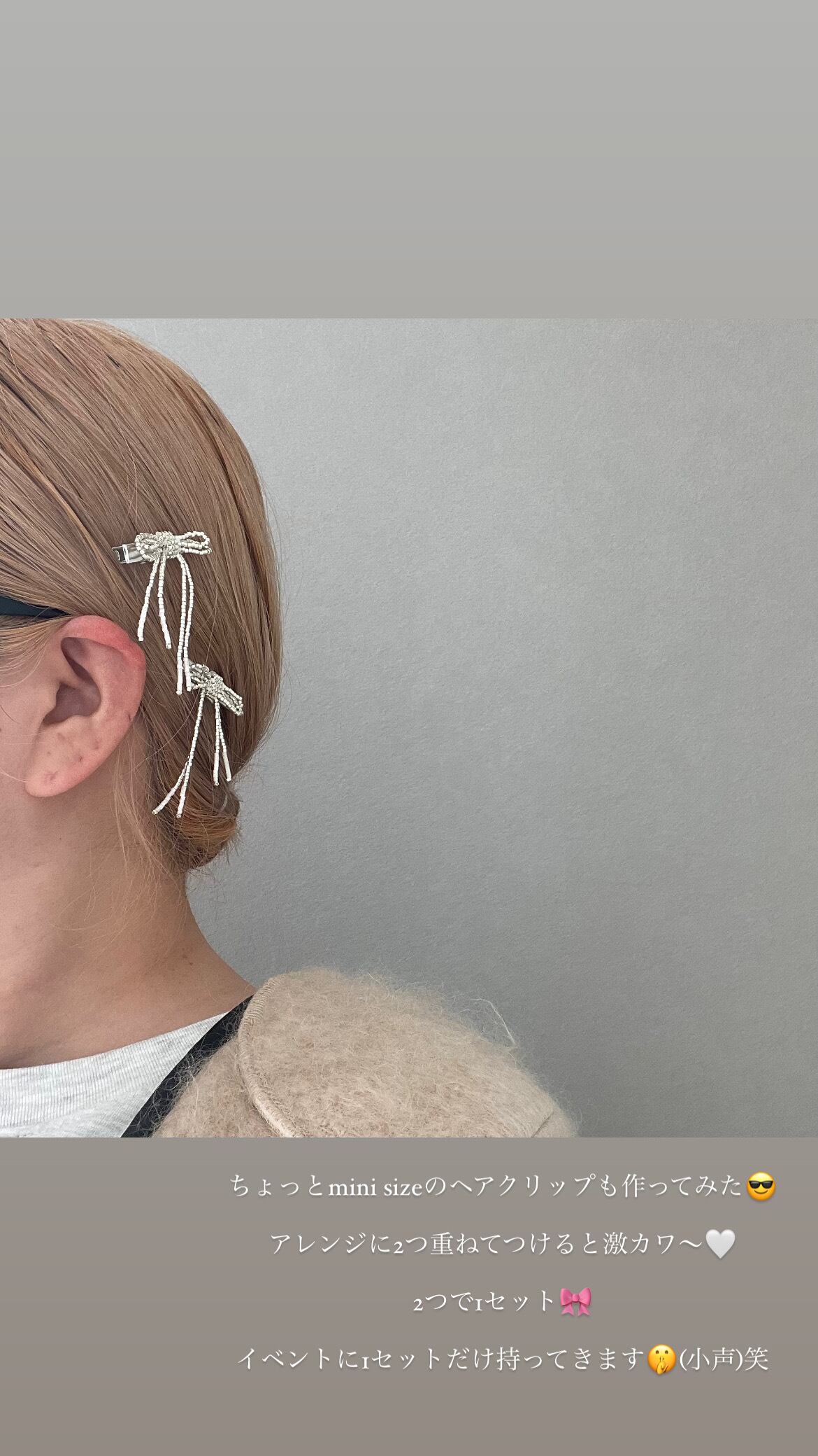 サイズ:ヘアクリップ約3.5㎝×0.6㎝、リボン全長約5.5㎝