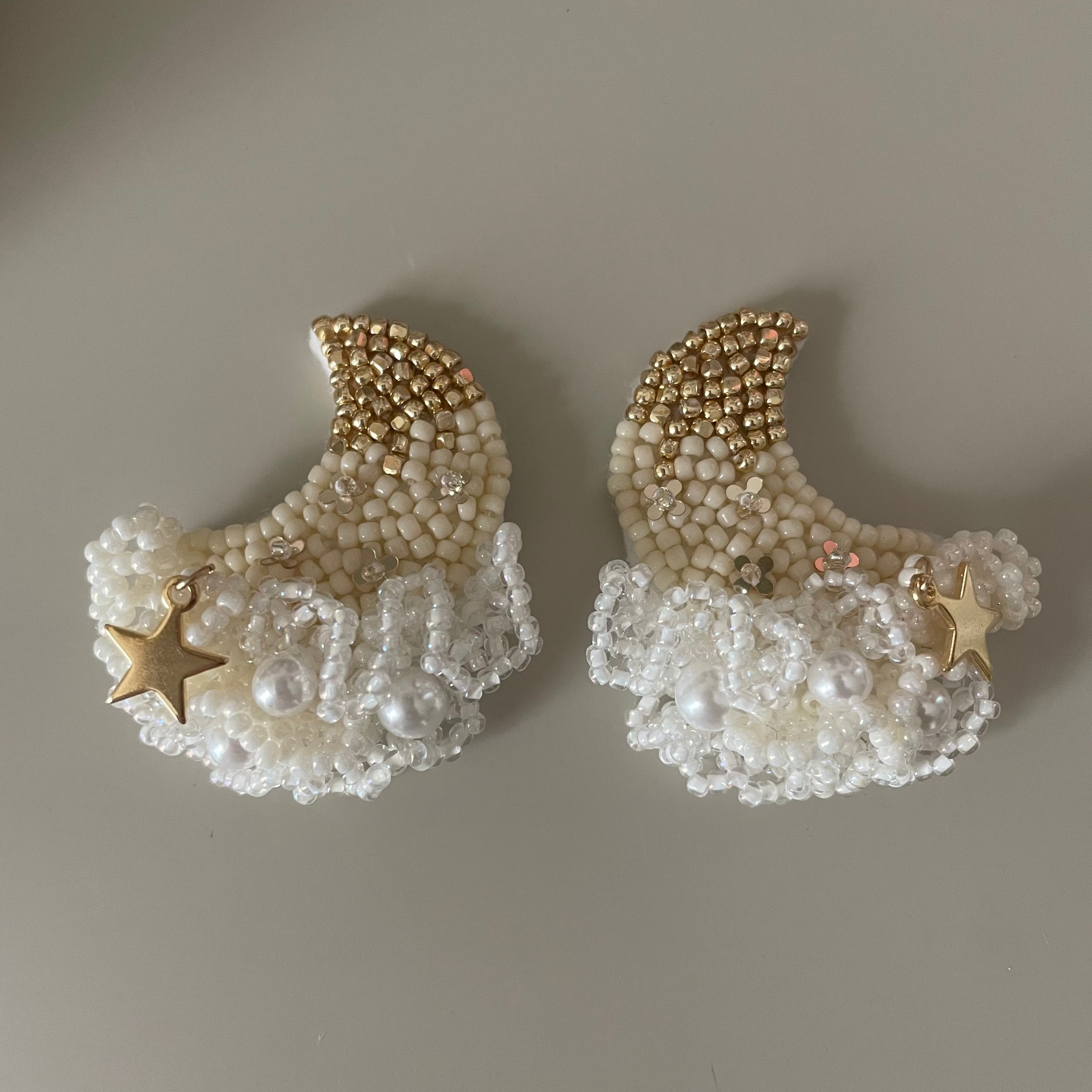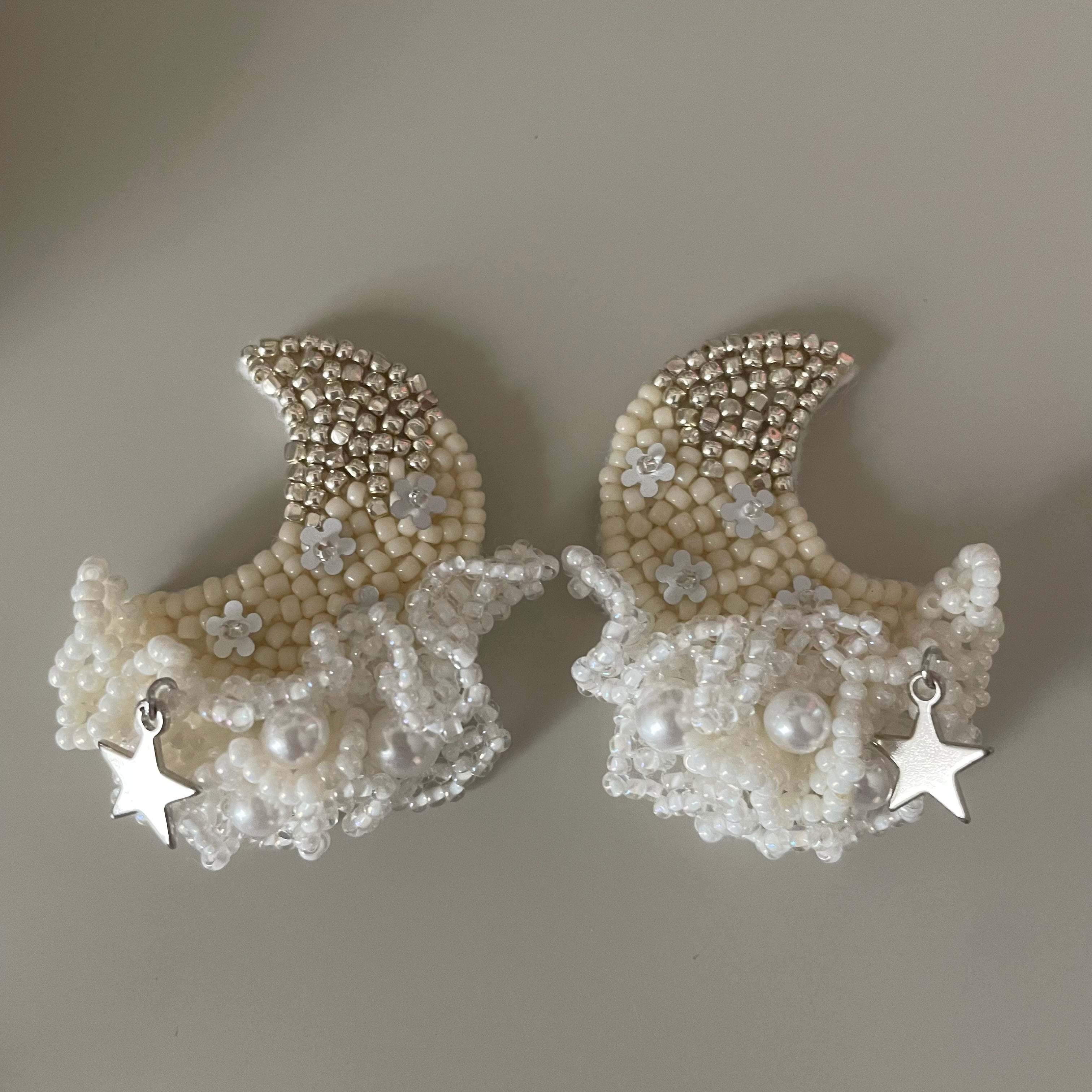 三日月に散りばめられたお花のスパンコールはフランス産のインポートスパンコールを使用。